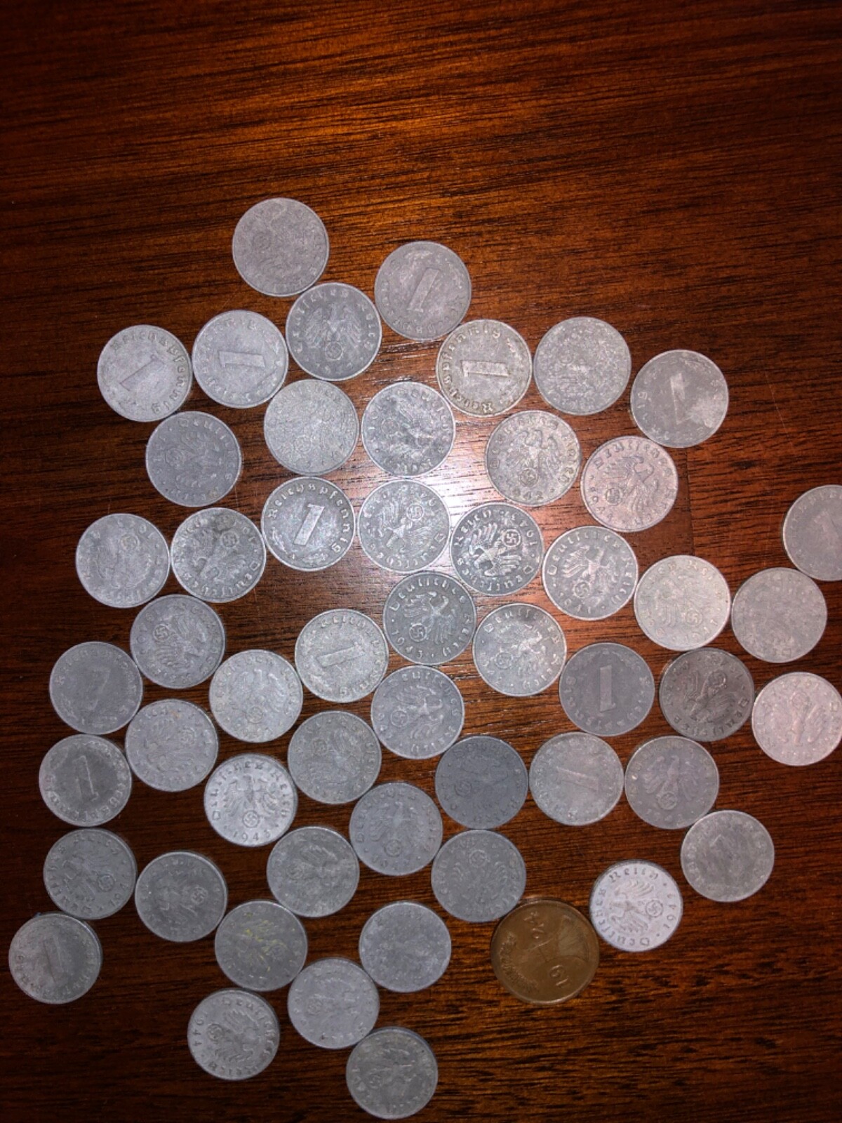 Description: Third Reich 1 Reichspfennig. 53 coins total.