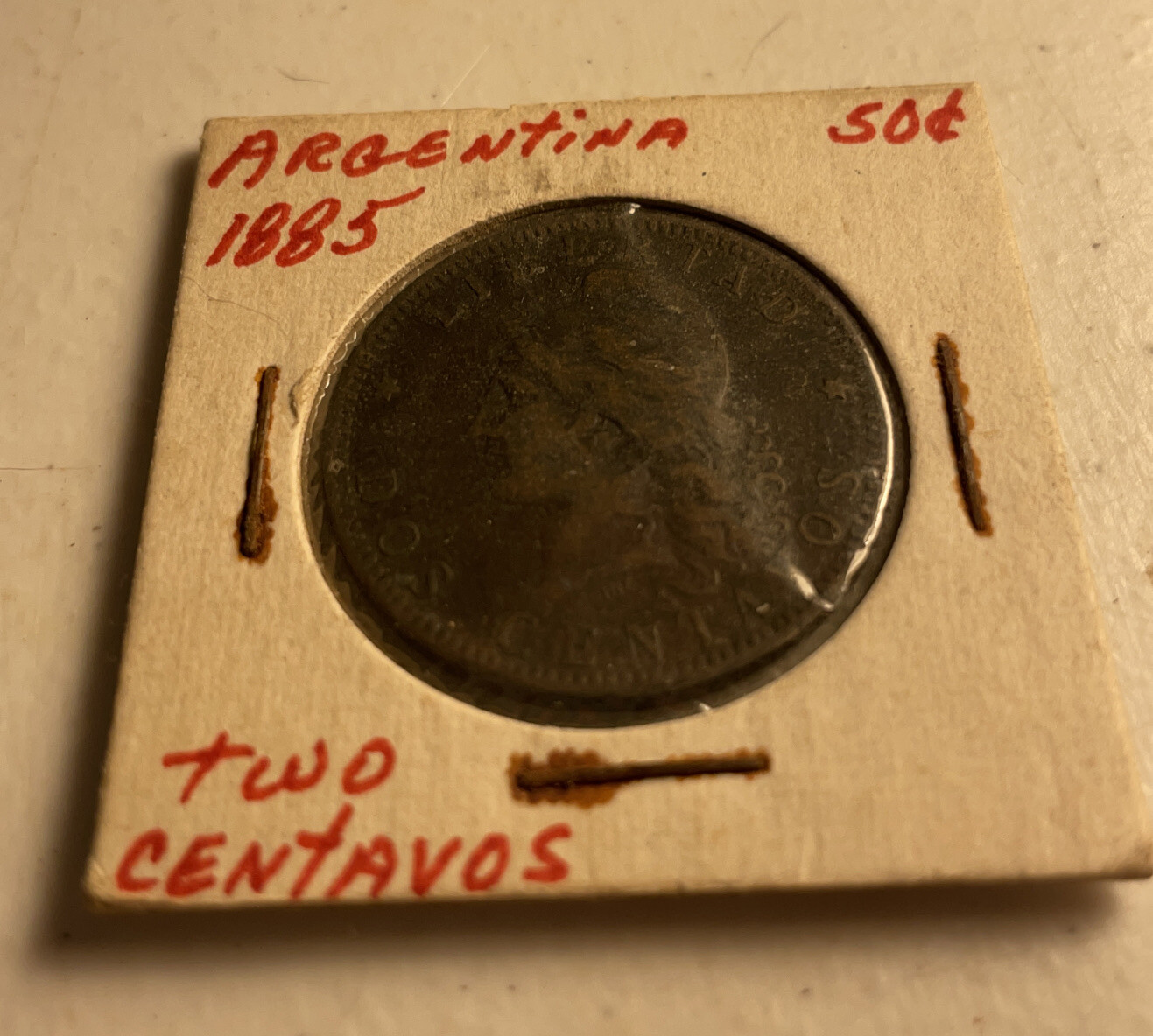 1882 Argentina 2 Dos Centavos. Key Date! Mintage Only 87 502. Patria Libertad