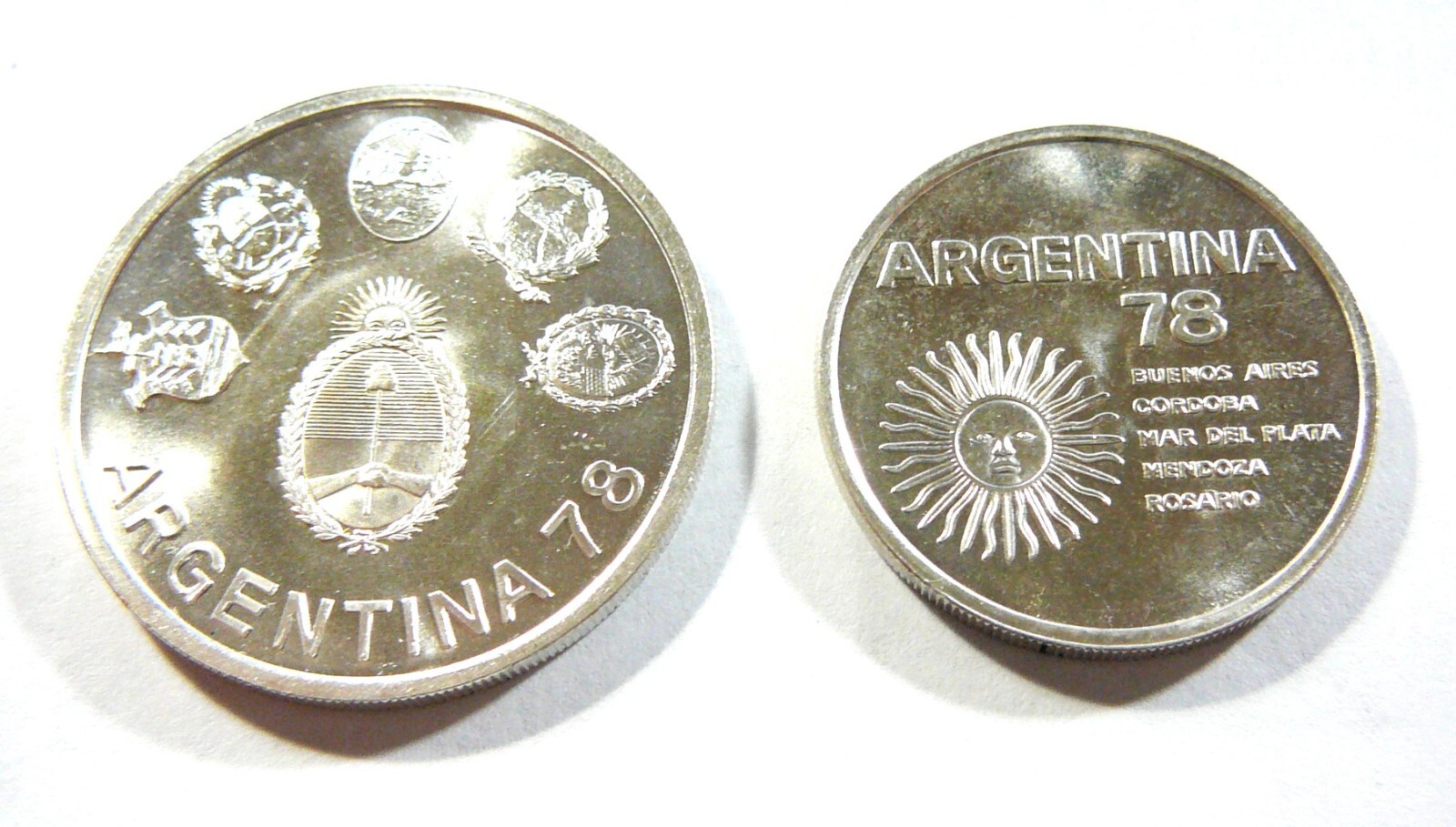 1977 ARGENTINA 1000 and 2000 PESOS SILVER WORLD FOOTBALL SILVER COINS SD 3