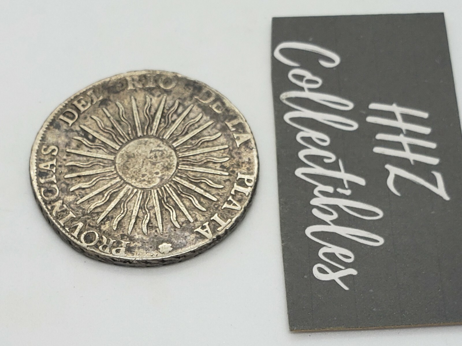 1813 Argentina Sun 8 Reales Silver Coin 8R - Certified NGC AU Details - Rare!