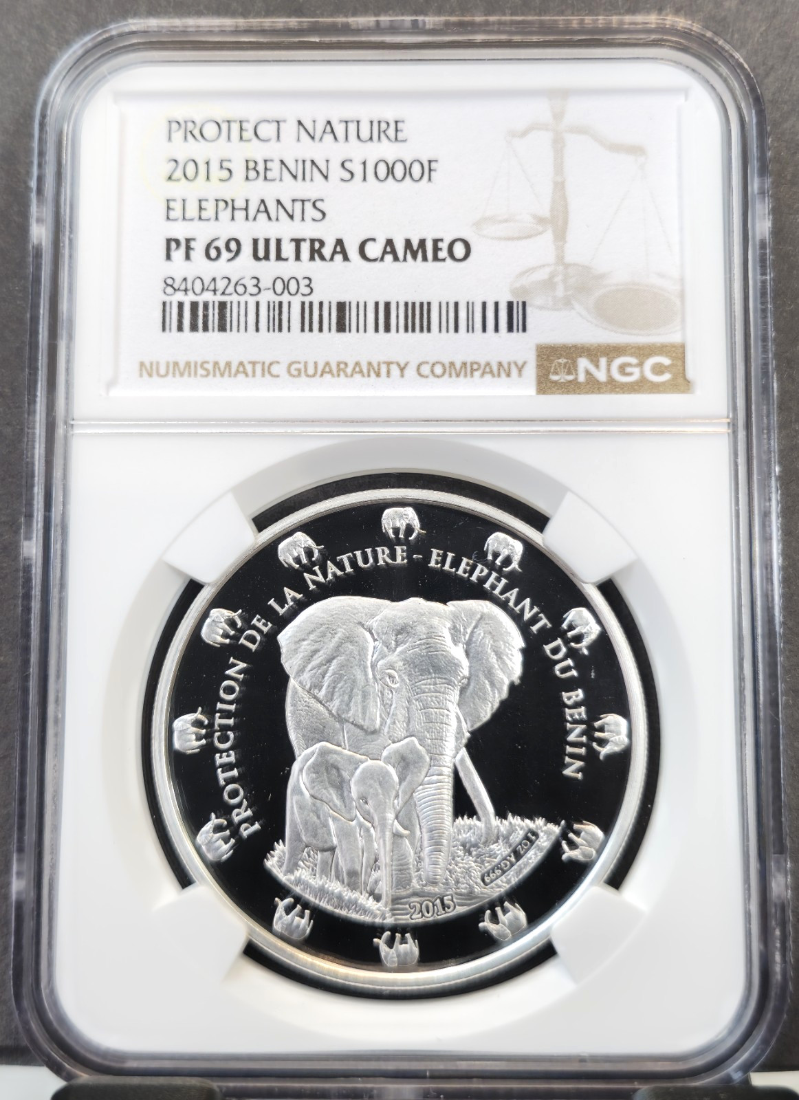 2014 Benin Elephant Silver 1 Oz. Coin 1000 Francs proof like 1st in series