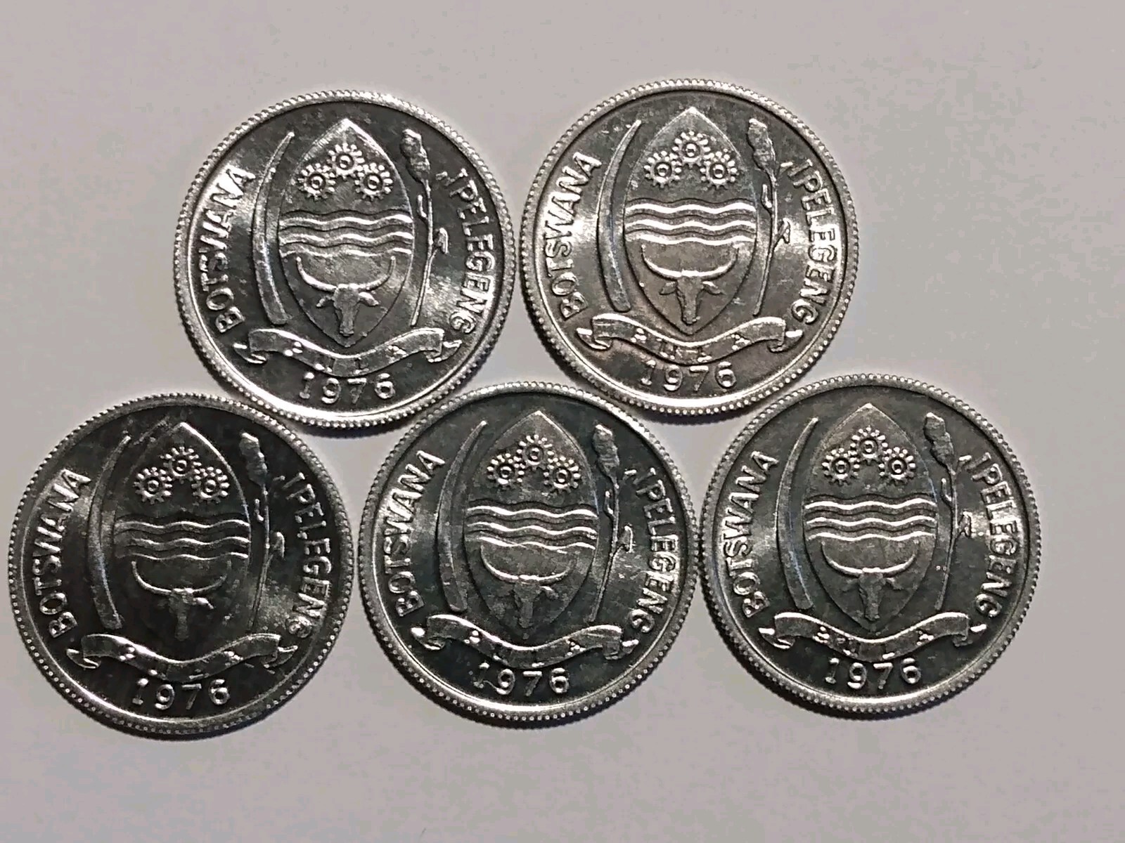 Description: ***for Overseas buyers or buyers registered outside of the USA the minimum order is $25. You will need to add all of your items to your ebay cart and make a single payment of at least $25. *** 1976 BOTSWANA 1 THEBE ALUMINUM (5 COINS) TURACO BIRD. UNC and one or two Aunc. See pics. *PLEASE DO NOT MAKE OFFERS*. SHIPPING TO THE USA. Shipping to the USA only.