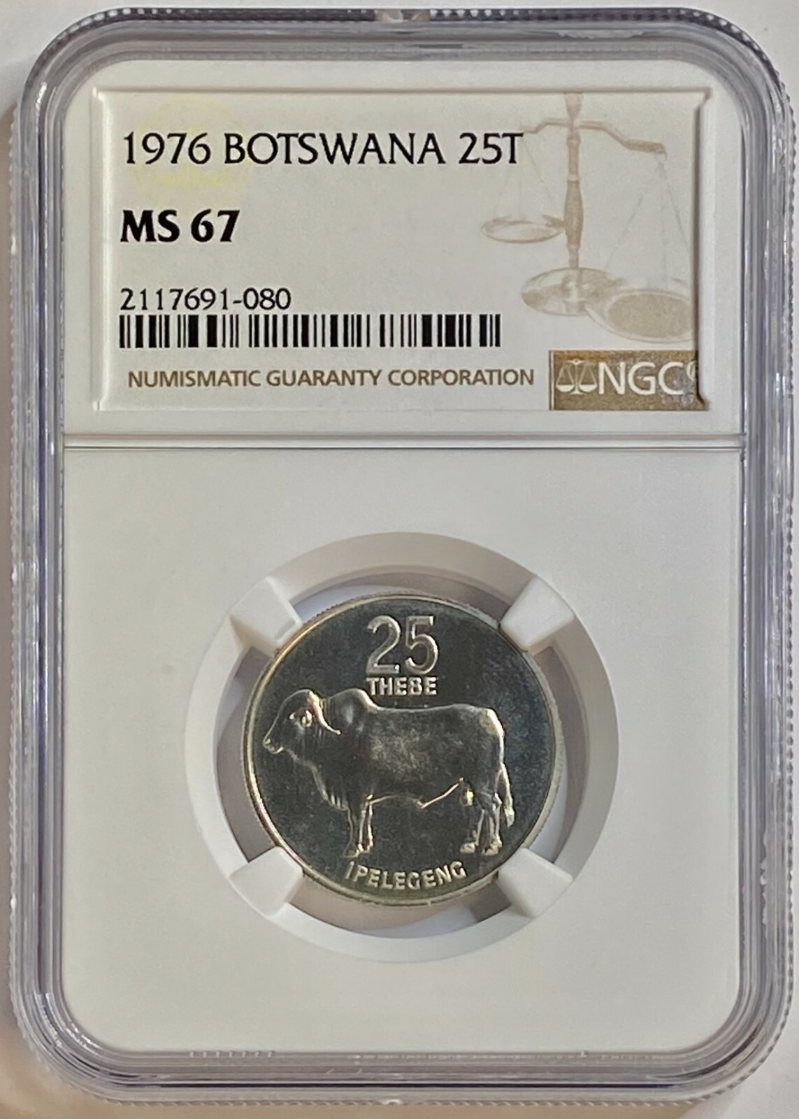 1976 BOTSWANA 25 THEBE NGC MS 67 FINEST KNOWN WORLDWIDE! Current Price: 299,99 USD Location: United States Type: Fixed Price Description: More like this:coins Botswana 3pcs1991 Botswana 1 Pula Zebra Animal World Africa Coin1998 Botswana 25 Thebe - Beautiful Coin - Lot #A200-211976 Botswana 10 Thebe1966 Botswana 50 Cent KM-1 SILVER COIN #82801991 Botswana 10 Thebe Z38181978 10 Pula Botswana Silver Conservation Coin Klipspringer. PCGS PR68DCAMCoin Sets of All Nations Botswana 1981 and 1984 UNC Unique Stamp and Date 30 IX 912 - 2 PULA COINS w/ RHINO from BOTSWANA DATING 1994 and BI-METAL 2013 (2 TYPES)TOKEN WHERE A KID CAN BEA A KID CHUCK E. CHEESE 1991 DEC17FWorld Coin Botswana 5 Thebe 1998 AU To Uncirculated Condition Nice CoinsBOTSWANA 5 Thebe 2013 UNC **Botswana 5 Thebe 1998 KM#26 Bird Animal Coin Money[#1085325] Coin Botswana 5 Thebe 1979Botswana 5 Thebe 1998 Gem Unc~7 Sided~Toko Bird~Free Shipping1976 BOTSWANA PULA NGC MS 66 DEEP PROOFLIKE FINEST KNOWN1991 Botswana 1 Pula Zebra Animal World Africa Coinlot of 13 coins of Tanzania and BotswanaBOTSWANA International Year of Disabled Persons - Silver 5 Pula 1981 - Br. UNC!Coins of All Nations Botswana 1 Thebe 1976 UNCBotswana 1976 - 1 Thebe Aluminum Coin - National Arms - Head of Turako2013 Botswana 2 pula Bimetallic Coin White or Square-Lipped Rhinoceros WildlifeBotswana 10 Thebe 2002 K27 Plains Zebras and Oryx Antelope. South African Mint.2016 Botswana 5 pula Bimetallic Coin Mopane Worm Caterpillar Insect WildlifeBOTSWANA 10 THEBE 1976 FAO WITH COA B36 #Z2045.1989 Botswana 25 Thebe Zebu Cow Cattle Animal Wildlife World Africa Coin Money2 COINS from BOTSWANA - 50 THEBE w/ BIRD and 1 PULA w/ ZEBRA (BOTH DATING 2013)BOTSWANA ANIMALS 7 COINS SET 5 10 25 50 THEBE + 1 2 5 PULA BIMETAL 2013 2016 UNC1984 Botswana 25 Thebe Lot#Z9320 High Grade! Beautiful!Botswana 5 Pula 2007 K30 Plains Zebras and Mophane Worm - Caterpillar BimetalBotswana 1 Pelegeng 5 Pula Current Circulated Bimetallic Coin Dated 2007BOTSWANA - Gemsbok - Silver 5 Pula 1978 - Proof Silver Coin - Mintage: 4 1721966 (UNC) Botswana 50 Cents Independence Commemorative World Silver CoinBotswana 5 Pula 2007 K30 Plains Zebras and Mophane Worm - Caterpillar BimetalBotswana 50 and 1 thebe Uncirculated 2 coins Eagle and Turaco birds KM# 7 KM#3BOTSWANA 1 Thebe 1976 .BOTSWANA 5 THEBE 1976 FAO WITH COA B36 #Z587Coin Botswana 2 Pula 1994 Rhino Animal Africa Coins World Foreign KM25 Zebra1998 Botswana coin 50 Thebe African Fish Eagle unc beauty small sizeBOTSWANA ANIMALS 6 COINS SET 5 10 25 50 THEBE + 1 2 PULA BIMETAL UNC 2013BOTSWANA Two Silver Proof Set 1978 Gemsbok and KlipspringerBOTSWANA OFFICIAL PHILATELIC NUMISMATIC COVER WWF A96 WWF32UNC Botswana 2013 Coins 7/Set1981 Botswana 2 Thebe Coin2008 Botswana 10 Thebe Coin - Free Shipping Within US!1998 Botswana 5T Brilliant Uncirculated NGC Toko bird animal wildlife coinNamibia 1987 Elephant German Colonial 5oz Silver Coin ProofSet of 6 coins of Botswana1984 BOTSWANA 10 THEBE UNC NGC MS 66 FINEST KNOWN WORLDWIDE🧭 🇧🇼 BOTSWANA STERLING SILVER MEDAL POTMASTERS ASSOC. B52 #9 Tags: Botswana coins Read more articles Previous Post1984 BOTSWANA 1 THEBE UNC NGC MS 66 FINEST KNOWN WORLDWIDE Next PostCoin Sets of All Nations Botswana w/card 1981 and 1984 UNC Caracal -1IX88
