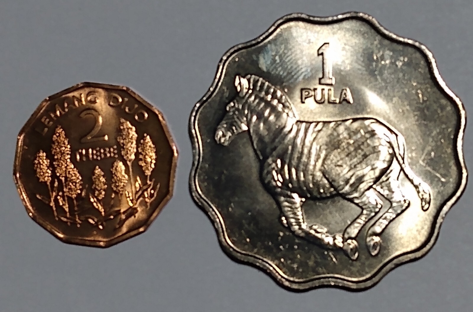 Description: ***for Overseas buyers or buyers registered outside of the USA the minimum order is $25. You will need to add all of your items to your ebay cart and make a single payment of at least $25. *** 1981 BOTSWANA 1 PULA & 2 THEBE (2 COINS) COPPER NICKEL & BRONZE ZEBRA See pics. *PLEASE DO NOT MAKE OFFERS*. SHIPPING TO THE USA. Shipping to the USA only.