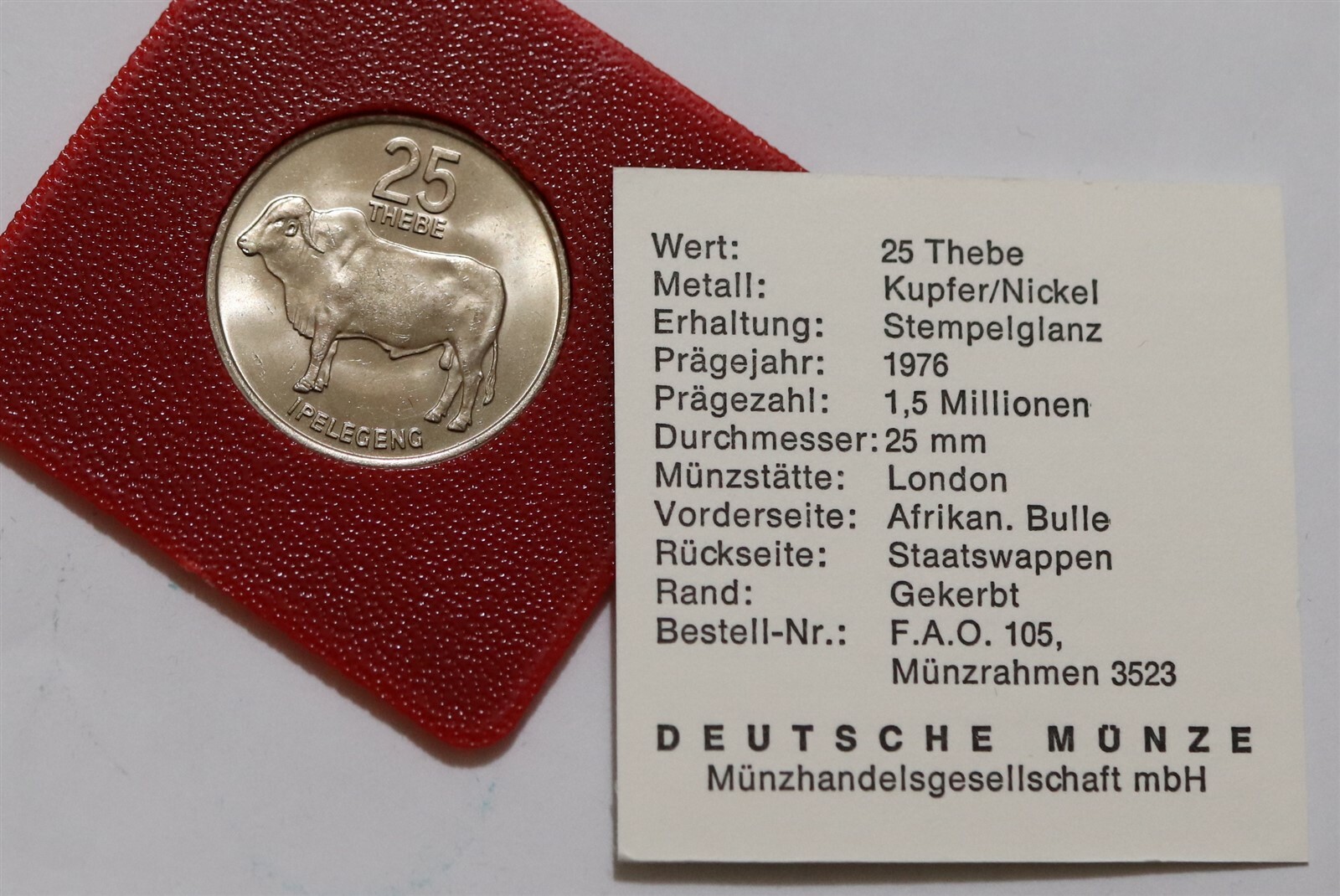 BOTSWANA 25 THEBE 1976 FAO WITH COA B36 #Z2102 Current Price: 7,23 USD Location: Portugal Type: Fixed Price Description: More like this:Botswana coins set of 6 pieces used🧠🇧🇼 BOTSWANA STERLING SILVER MEDAL POTMASTERS ASSOC. B52 #91966 BOTSWANA President Sir SERETSE Genuine Antique Silver 50 Cent Coin i822982007 BOTSWANA 1 PULA BEAUTIFUL COLLECTIBLE COIN #WT32429BOTSWANA 1 Pula 2013 UNC 🙂1978 Botswana silver coin 5-10 Pula GEMSBOK and KLIPSPRINGER ProofBOTSWANA 1976 Original 6-Coin Proof Set 'First coinage of the Republic'Botswana 10 Thebe 2002 K27 Plains Zebras and Oryx Antelope. South African Mint.🧠🇧🇼 BOTSWANA MINT SET HIGH GRADE B65 #9 BX2Coin Sets of All Nations Botswana Republic Of With Card 1981-1984Botswana 50 5 and 1 thebe Uncirculated 3 coins with Eagle Hornbill and Turaco birdsBotswana ~ 5 Thebe ~ (1998) ~ Ipelegeng Pula ~ Lot Of 3 Coins ~ KM#261981 Botswana 2 Thebe Coin1960 BOTSWANA President Sir SERETSE Genuine Antique Silver 20 Escudo Coin i82412NGC 1984 BOTSWANA MS65RD 5 THEBE AFRICA FOREIGN PCGS LOT COINS BIRDSET OF 7 COINS FROM BOTSWANA. 5 10 25 50 THEBE 1 2 5 PULA. 1991-20091984 Botswana 5 thebe toko bird red UNC KM-4 (BB2) /N59🧠🇧🇼 BOTSWANA SEALED MINT SET B68 #1161976 Botswana Red-Billed Hornbill 5 Thebe Coin - NGC MS 65 RDBOTSWANA 25 THEBE 1976 FAO WITH COA B36 #Z2102World Coin Botswana 5 Thebe 1998 AU To Uncirculated Condition Nice Coins1966 Botswana 50 Cents Lot#E2802 Silver! High Grade! Beautiful!1991 Botswana 5 Thebe Red-Billed Hornbill2 DIFFERENT COINS from BOTSWANA - 1981 2 THEBE and 1998 5 THEBE w/ BIRDBotswana 50 thebe 1977Lot of 8 coins of Botswana and Namibia1991 Botswana 10 Thebe - Beautiful Coin - #A-021-B1991 Botswana 50 Thebe Coin1981 BOTSWANA 1 PULA and 2 THEBE (2 COINS) COPPER NICKEL and BRONZE ZEBRABOTSWANA 5 THEBE 1976 FAO WITH COA B36 #Z5871991 Botswana 25 Thebe Cow Cattle Animal Wildlife Coin MoneyBeautiful silver PROOF coin Botswana Independence First Day Cover .9253 COINS from BOTSWANA - 1991 2 THEBE 1998 5 THEBE and 2001 1 PULA (with ZEBRA)21 PC LOT BOTSWANA COINS THEBE 2 5 10 25 and 50 THEBE and PULA 2 and 5 PULA WILDLIFEBotswana 1978 Gemsbok 5 Pula Silver Proof Coin (Royal mint Proof) KM# 11aFalkland Islands 1974 Proof Set 5 Coins KM# PS1 with Original Case and Envelope2004 Botswana 2 Pula Old Rare Coin Coins Money Moneda World Monies PelegengBotswana 1981 2 Thebe 1986 10 Thebe 1996 5 Thebe Coins1966 Botswana 50 Cents Silver Coin High Grade High ValueBotswana 5 Pula 2013 K37 Plains Zebras and Mopane Worm - Caterpillar Bimetal1976 BOTSWANA 25 THEBE NGC MS 67 FINEST KNOWN WORLDWIDEBOTSWANA 2013 50 THEBE "FREE SHIPPING AND TRACKING" *605Botswana Set 7 PCS Coins 5 10 25 50 Thebe 1 2 5 Pula 2013-2016 UNC AnimalsBotswana 1978 Klipspringer 10 Pula Silver Proof Coin (Royal mint Proof) KM# 12a[#56572] BOTSWANA 5 Pula 1976 KM #9a MS(65-70) Silver 28.28Botswana 5 Pula 1988 Silver Proof Low Mintage!NATURAL Green Botswana Agate Gemstone Bead 25mm 30mm Coin Shape Loose BeadsTOKEN WHERE A KID CAN BEA A KID CHUCK E. CHEESE 1991 DEC17F2000 Botswana 5 Pula Coin1991 Botswana 1 Pula Zebra Animal World Africa Coin Tags: Botswana coins Read more articles Previous PostBOTSWANA 1 Pula 2013 UNC :) Next Post1991 Botswana coin 1 Pula ZEBRA unc beauty nice large coin AFRICA