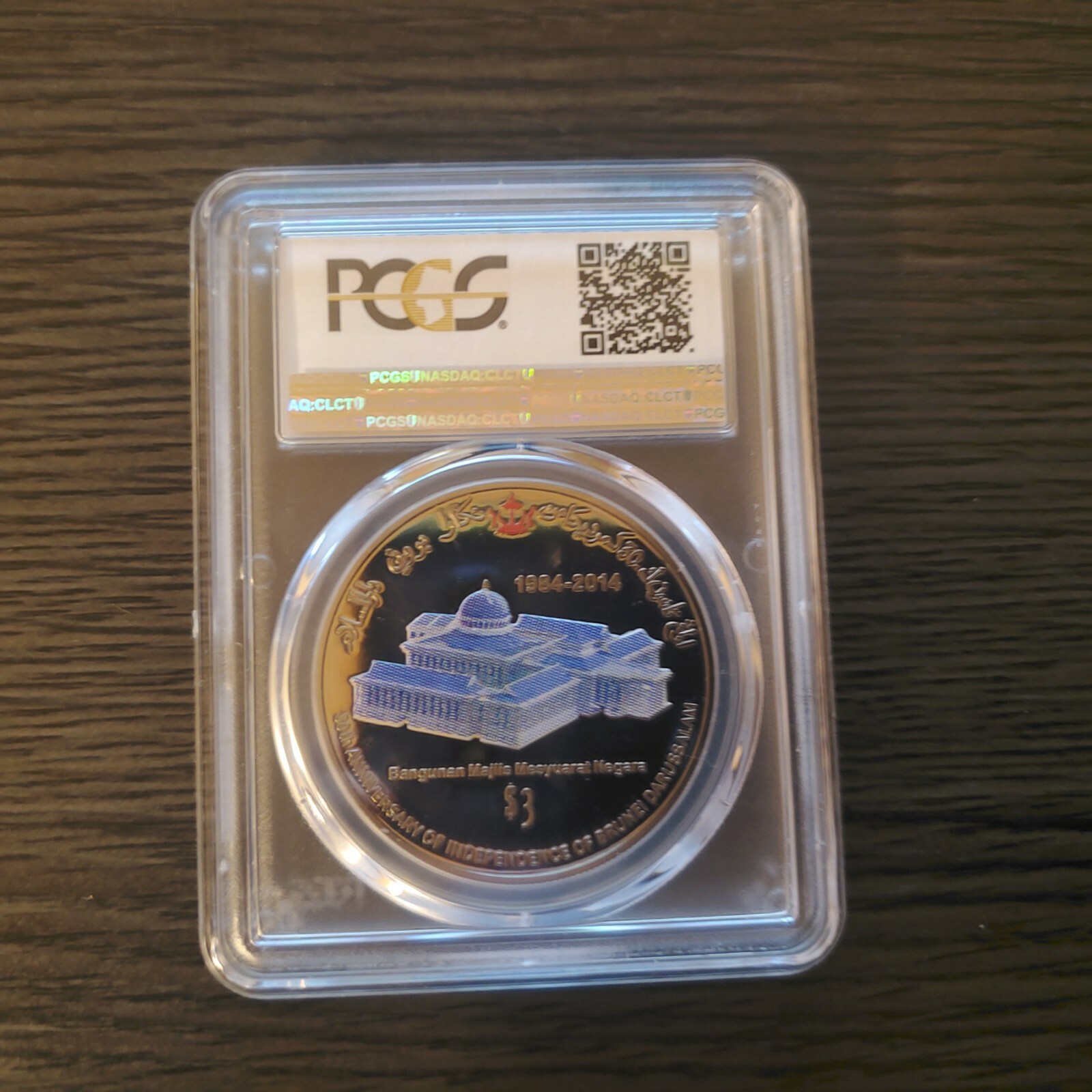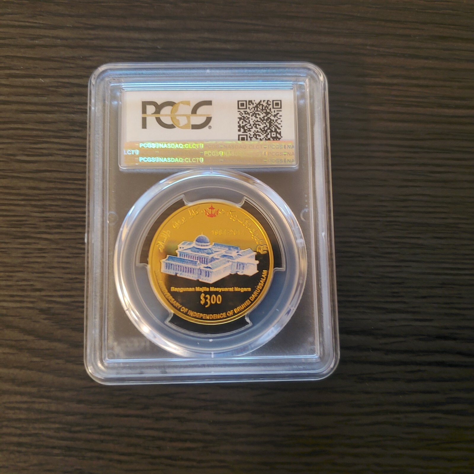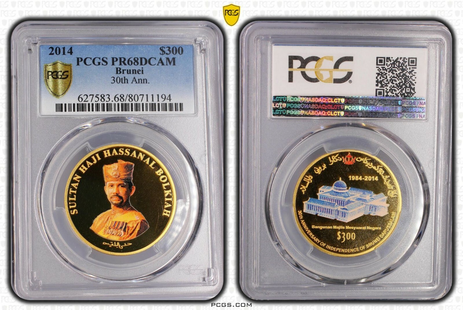 Description: Brunei 2014 1 oz Gold & 1oz Silver Rare Coins 30th Independence Anniversary PCGS PROOF 68 Very Rare.