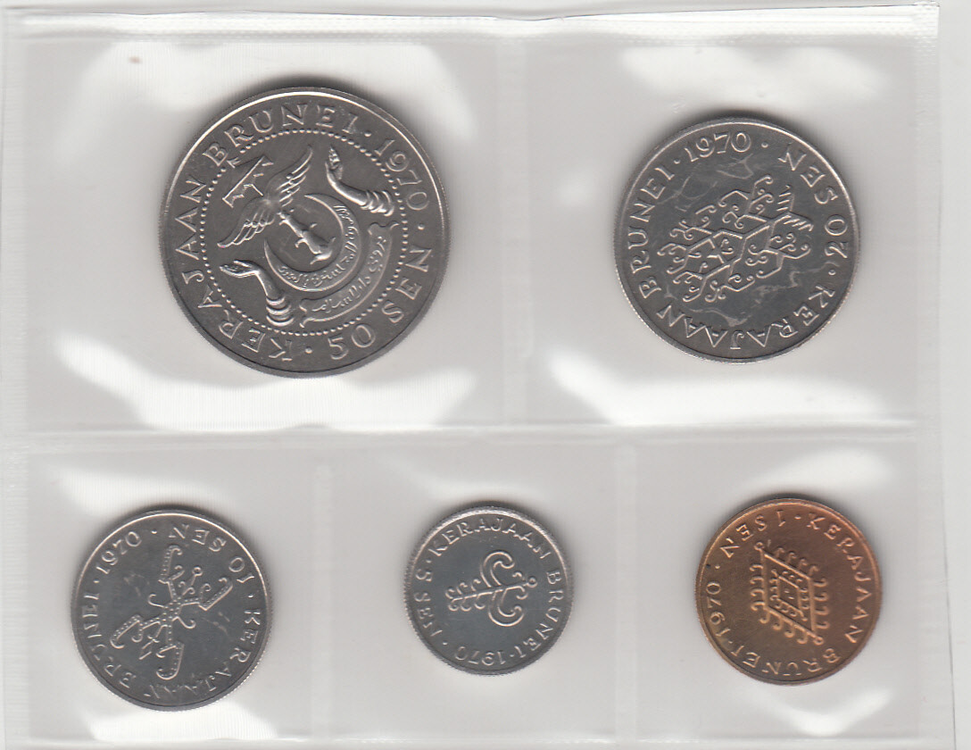 Description: 5 coin Proof set 1970, sealed in vinyl for protection, with case.