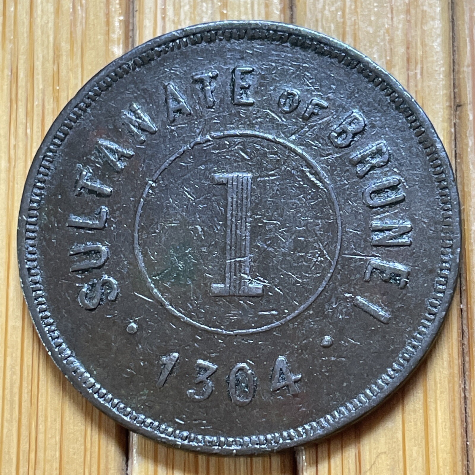 Description: This rare Brunei one cent coin from 1887 is a fascinating addition to any coin collection. Made of copper and graded AU 58, it features an intricate design that showcases the rich history of Brunei Darussalam.