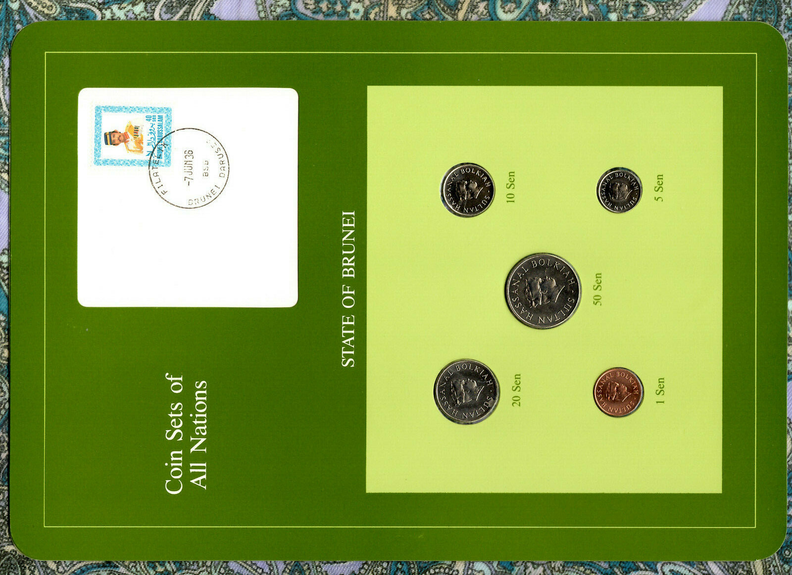 Coin Sets of All Nations Brunei w/card UNC 1 5 50 Sen 1988 10 20 Sen 1987