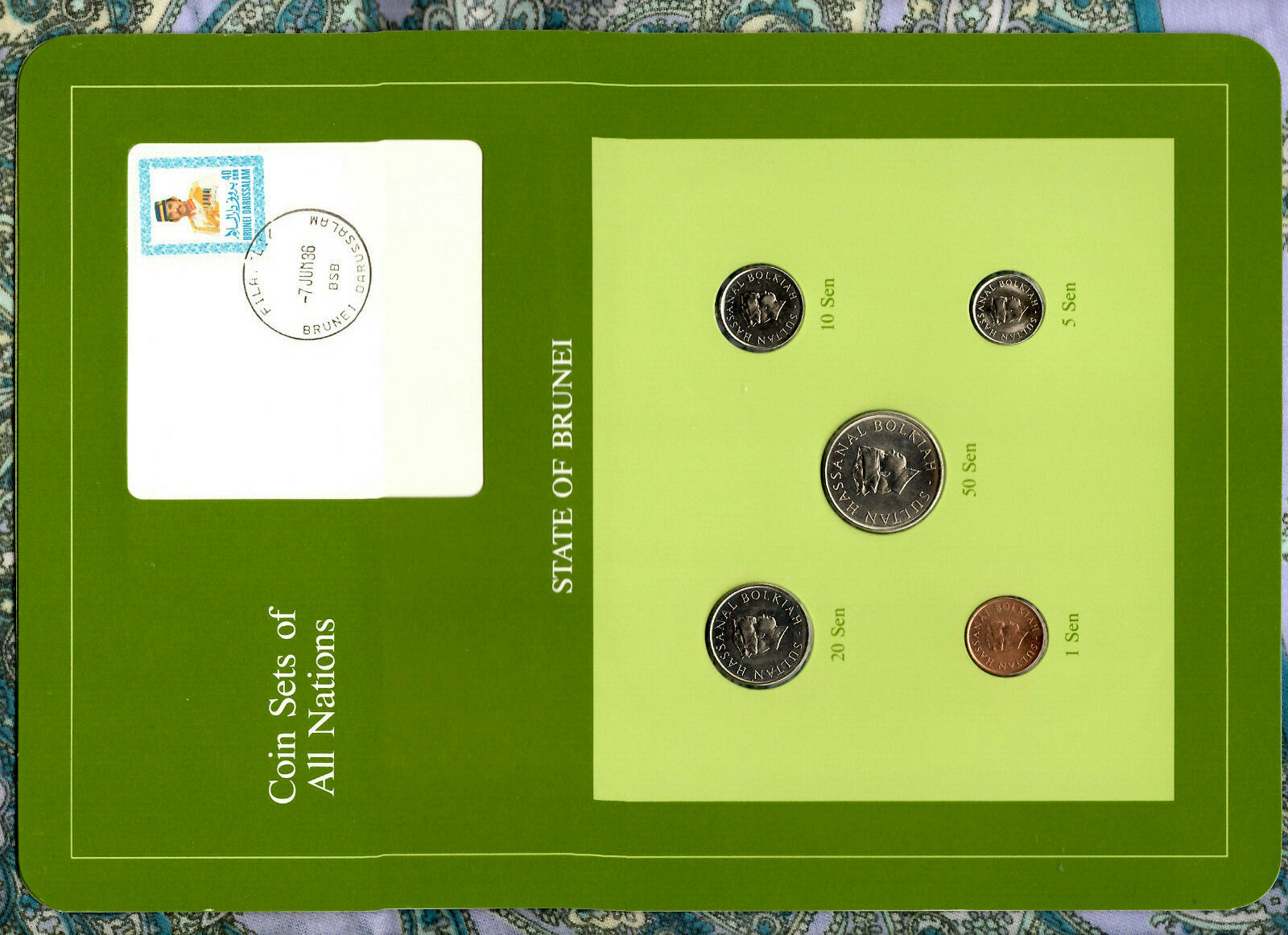 Description: 50 Sen – 1985 20 Sen – 1985. spotting on 1 Sen. 10 Sen – 1985. 5 Sen – 1984. 1 Sen – 1984. State of Brunei. Coin Sets of All Nations Collection. “Coin Sets of All Nations” series.