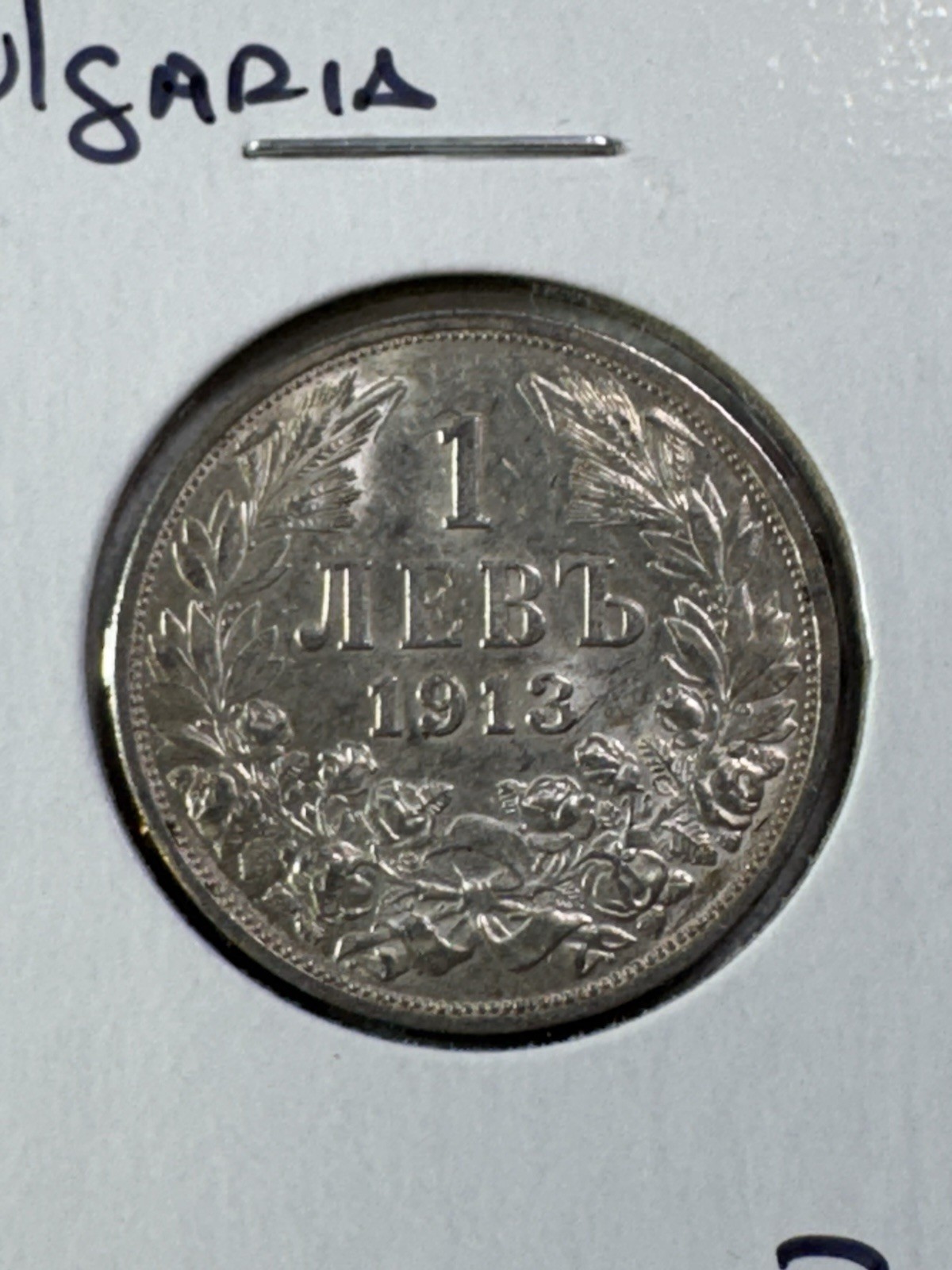 1913 BULGARIA 🇧🇬 SILVER 1 LEV Coin FERDINAND I details inside *