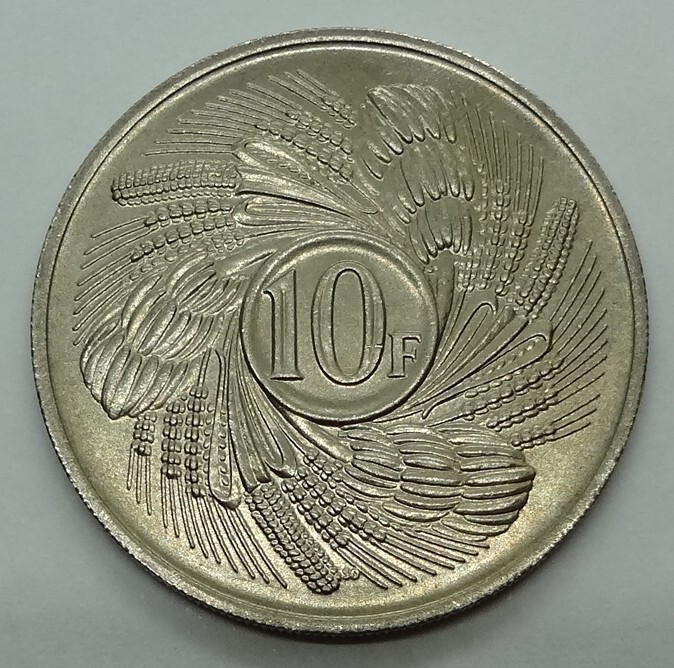 1968 BURUNDI 10 FRANCS FAO UNC COIN SHEAVES of WHEAT Triskelion KM 17