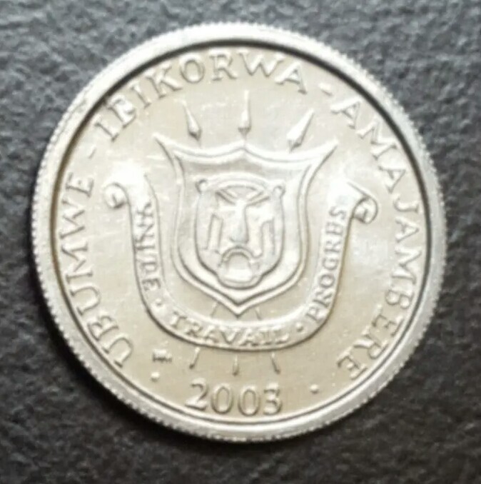 Burundi 2 Coins Lot - 1 Franc 2003 + 5 Francs 1980 Aluminium UNC