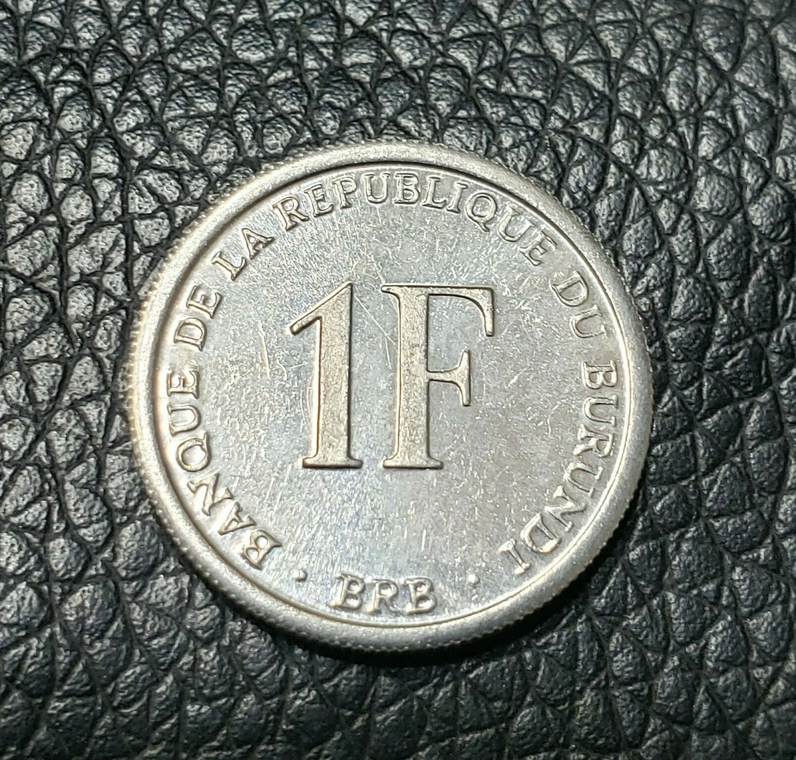 COIN SETS OF ALL NATIONS BURUNDI. 1980 5 FRANCS AND 1993 1 FRANC.