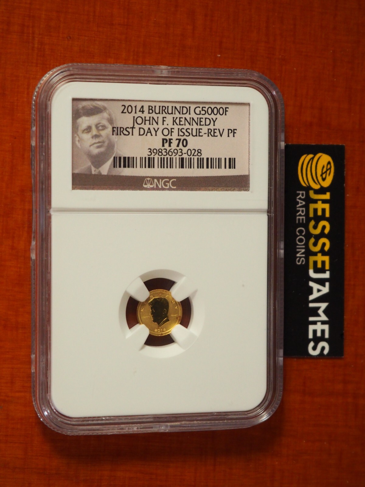 (MA3) 2014 Burundi Gold G5000F Kennedy 1st Day issue Reverse Proof NGC PF70 FDOI