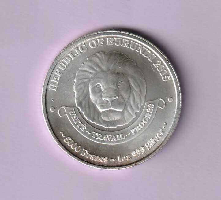 Republic of Burundi 2015 5000 Francs 1 oz Silver Round .999 Silver African Lion