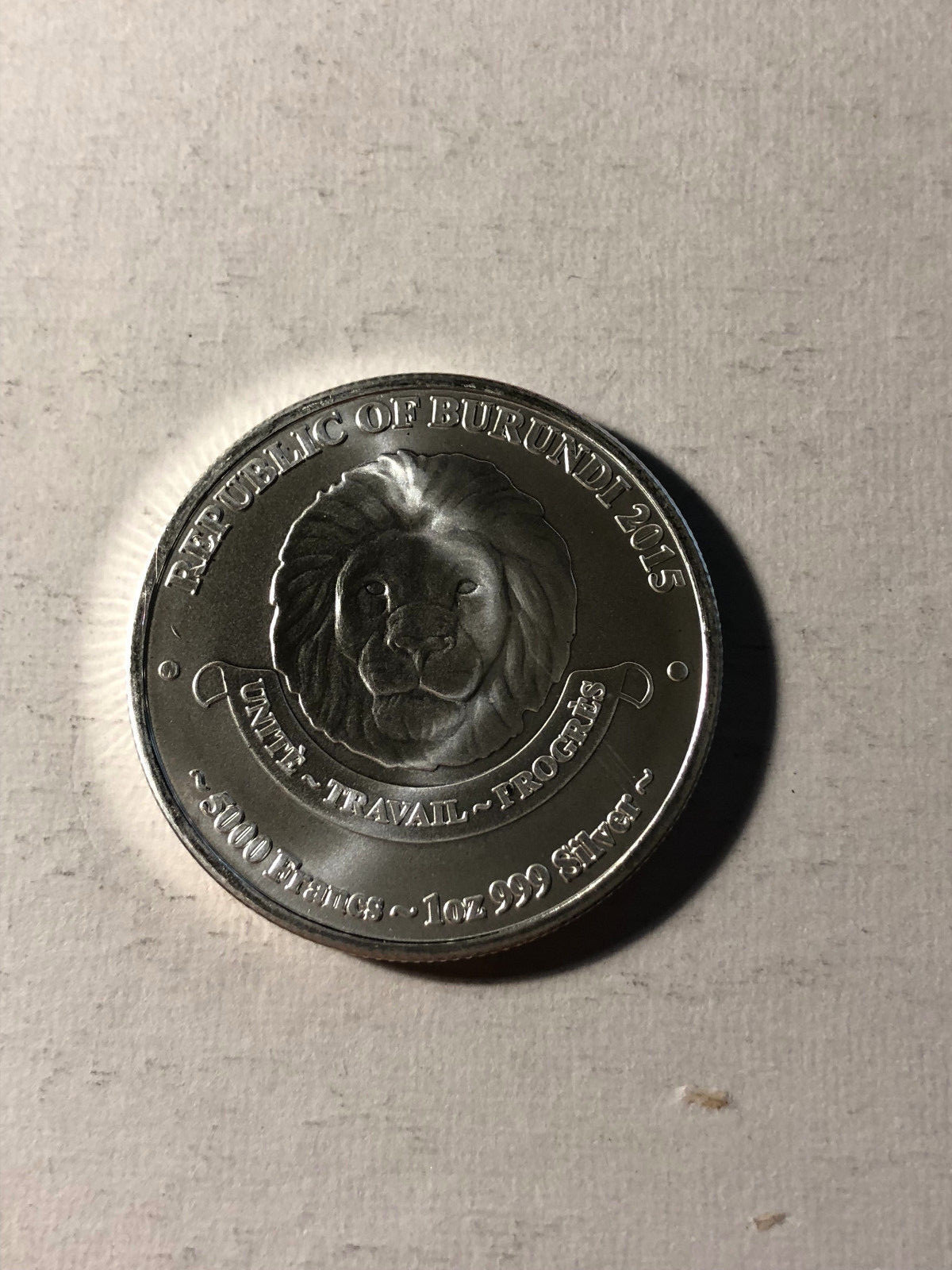 5000 franc -one ounce- silver lion -Burundi