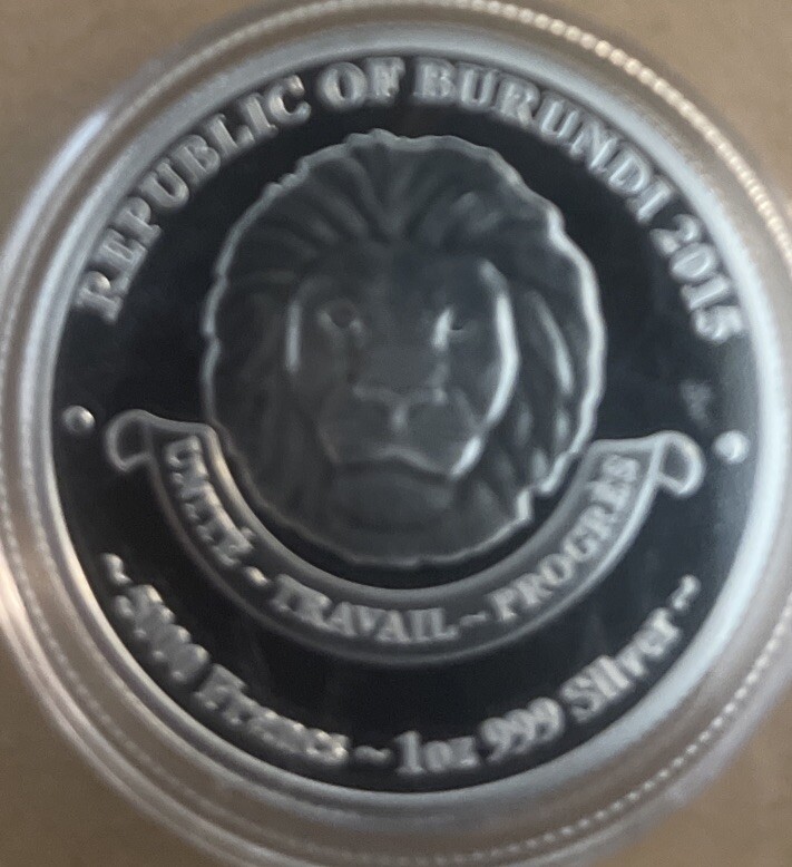 2015 Burundi African Lion 5000 Francs 1 oz .999 Fine Silver COIN in Capsule