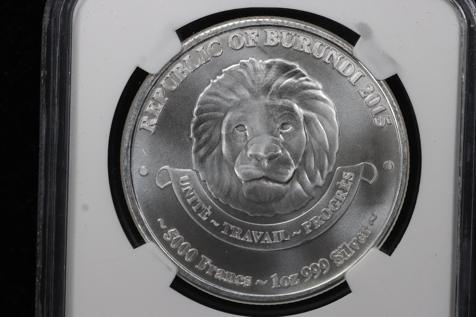 2015 Burundi 1 oz .999 Silver African Lion 5000 Francs BU Coin Low 50K Mintage