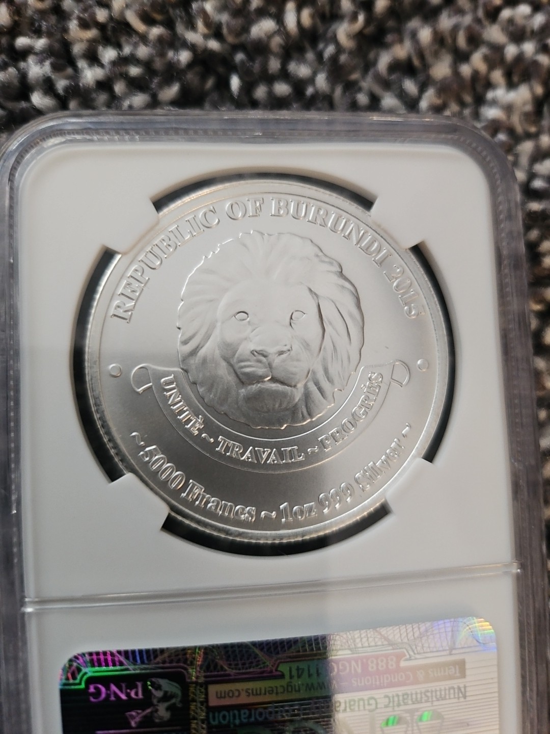 2015 Burundi 1 oz .999 Silver African Lion 5000 Francs BU Coin Low 50K Mintage