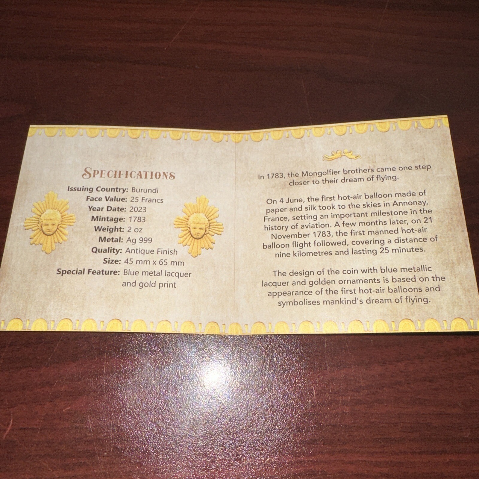 2023 Burundi Hot Air Balloon 2 oz Silver Coin OGP | See Pics