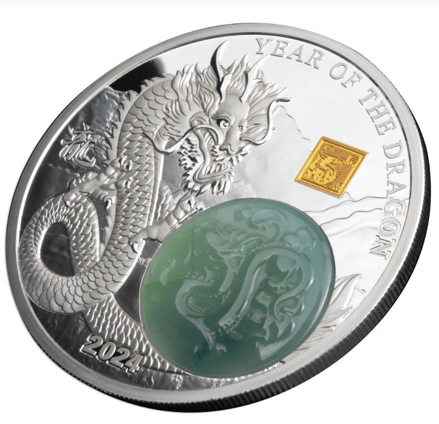 Description: SPECIAL FEATURE: Jadestone Insert, partial 24K Gold Plating, Partial Hologram Effect. YEAR OF ISSUE: 2024. ISSUING COUNTRY: Burundi. FINISH: Proof. COMPOSITION.999 Silver. DENOMINATION: 25 Francs.