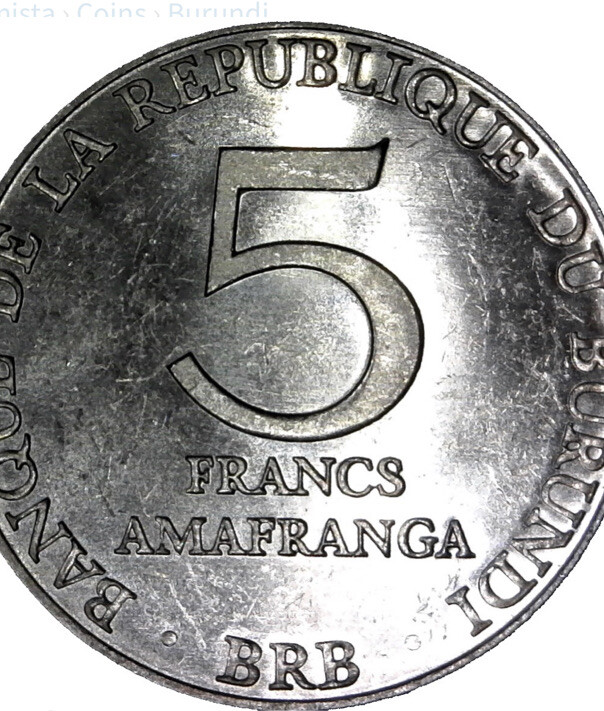 COIN SETS OF ALL NATIONS BURUNDI. 1980 5 FRANCS AND 1993 1 FRANC.