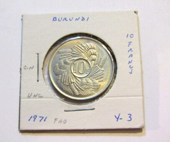1968 BURUNDI 10 FRANCS FAO UNC COIN SHEAVES of WHEAT Triskelion KM 17