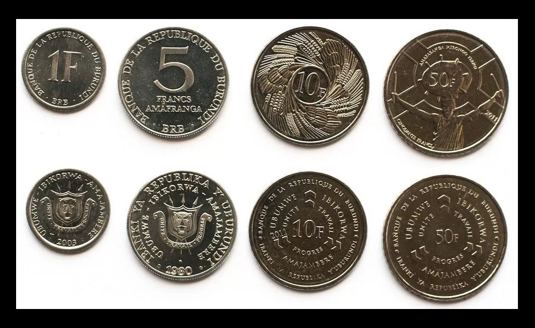 COIN SETS OF ALL NATIONS BURUNDI 1980 5 FRANCS AND 1993 1 FRANC Rare set