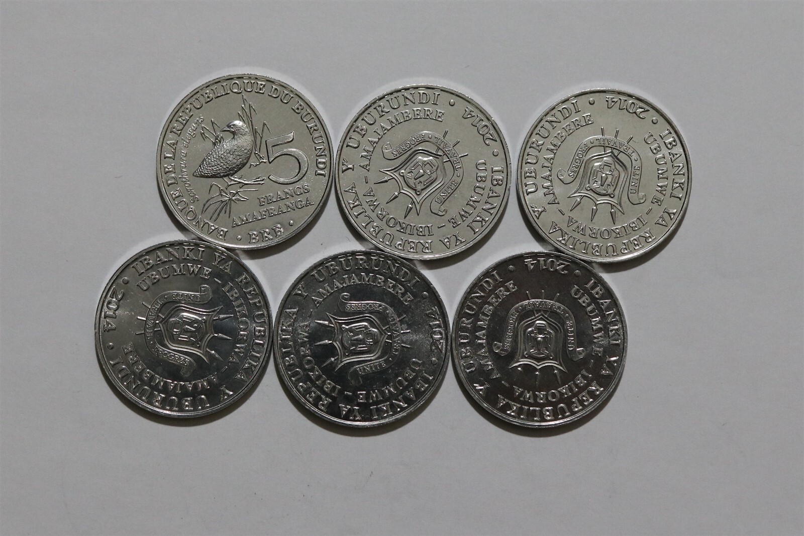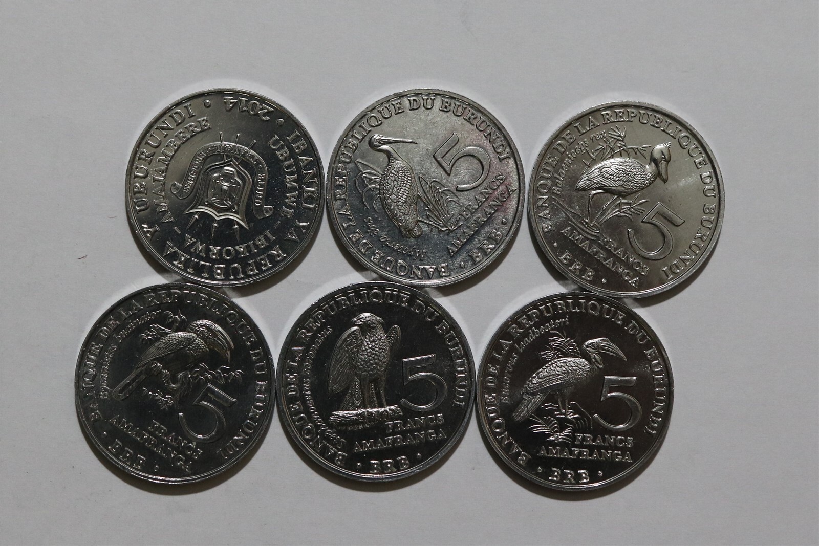 BURUNDI 6 COINS SET 5 FRANCS FAUNA AFRICA WILDLIFE AFRICAN BIRDS 2014 UNC