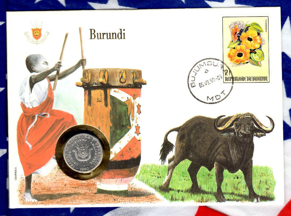 🧠BURUNDI 5 FRANCS 1980 COIN COVER B53 #75