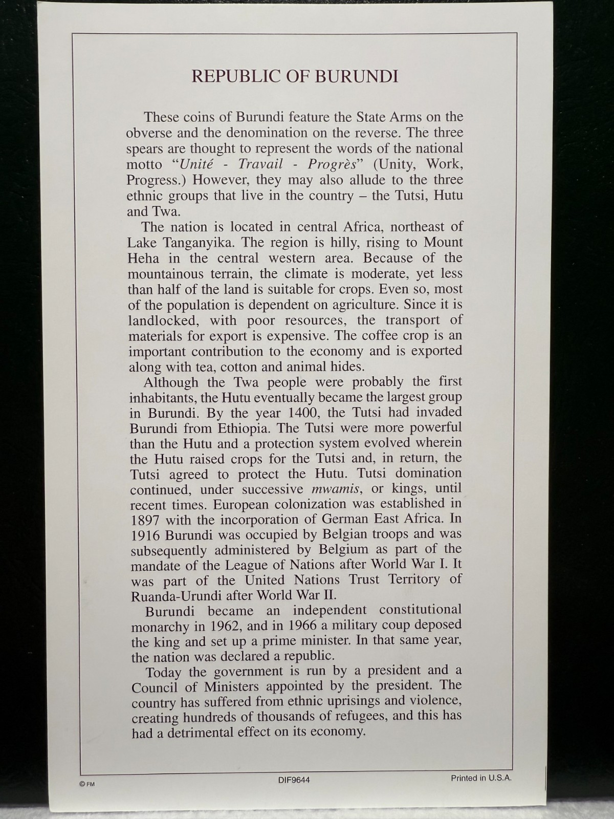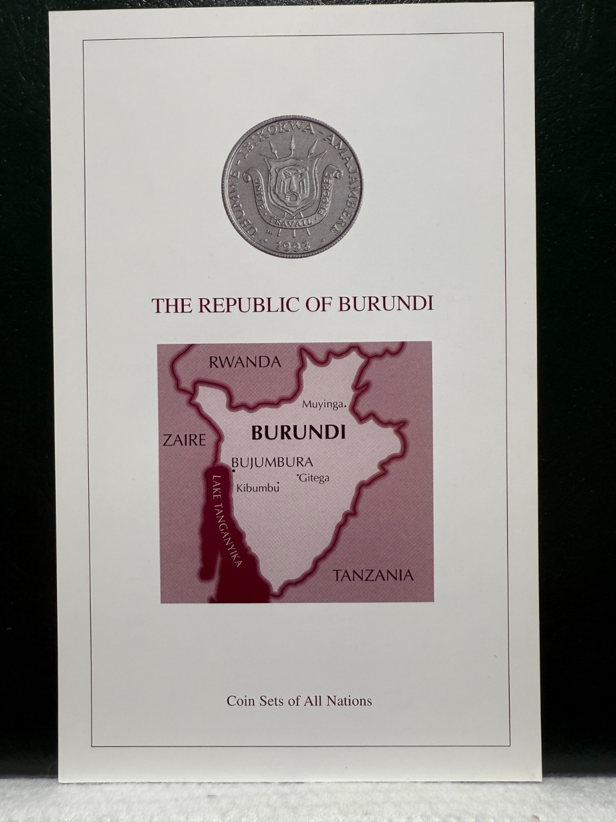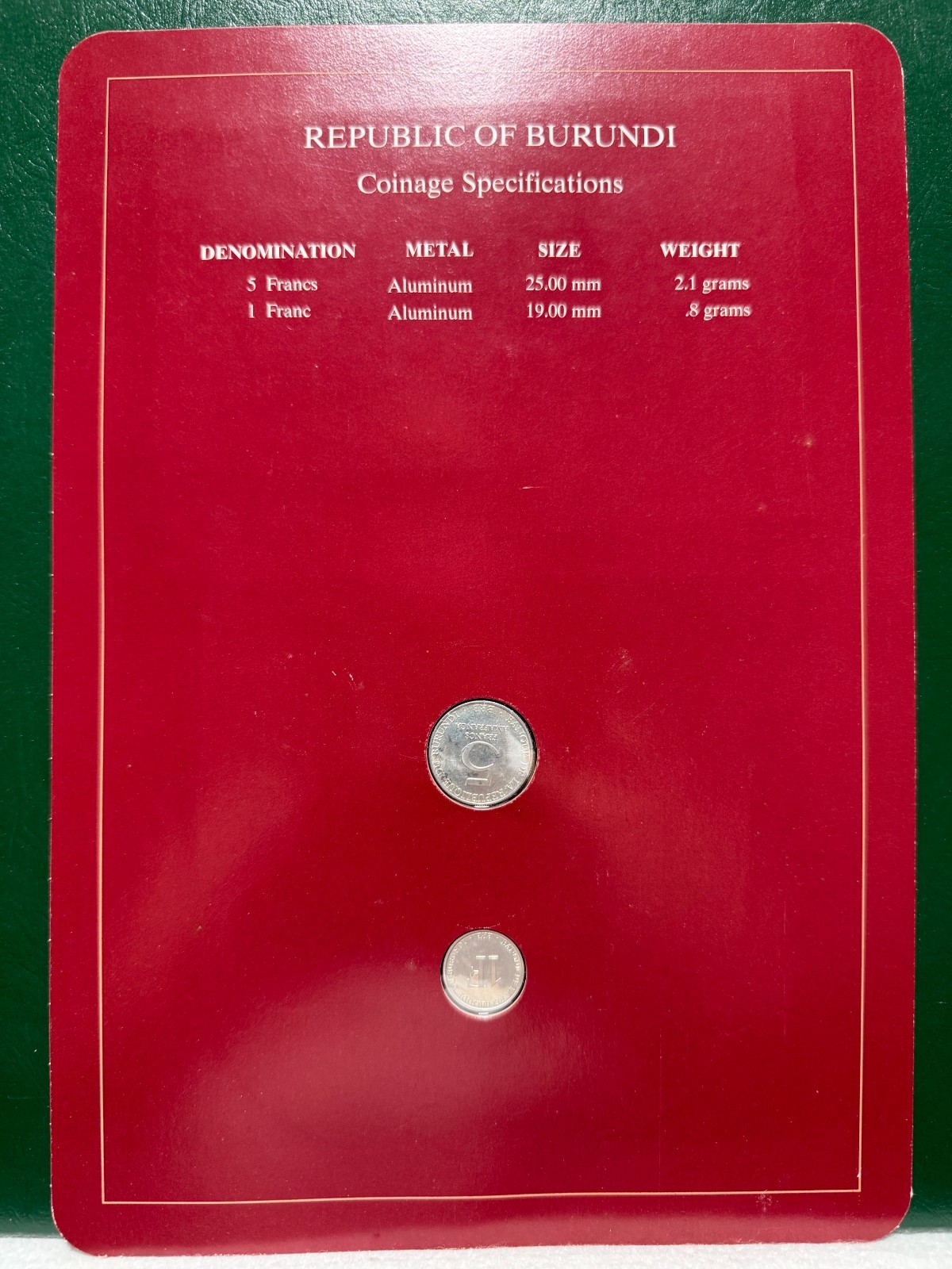 COIN SETS OF ALL NATIONS BURUNDI w/card 1980 5 FRANCS AND 1993 1 FRANC Rare set