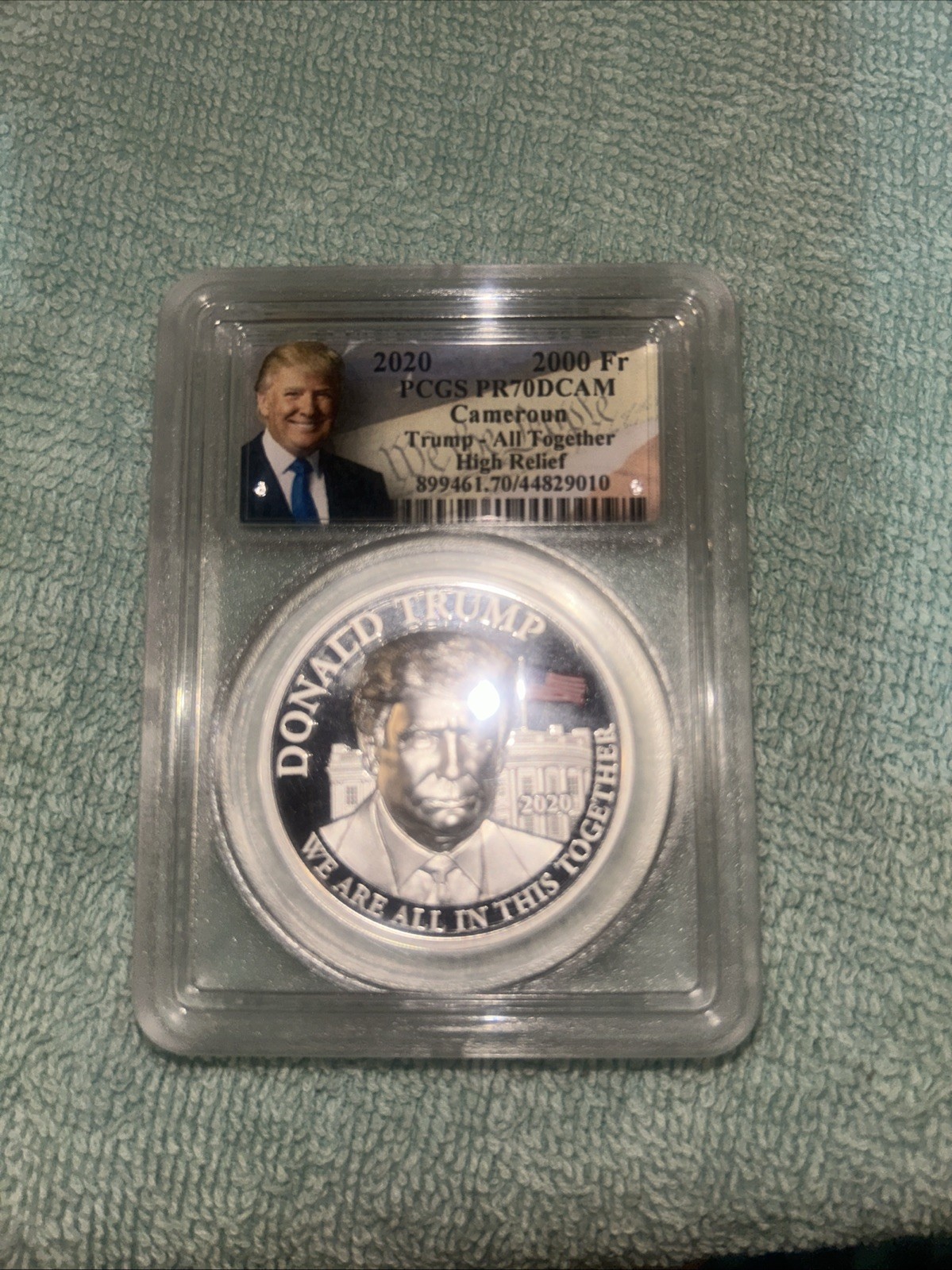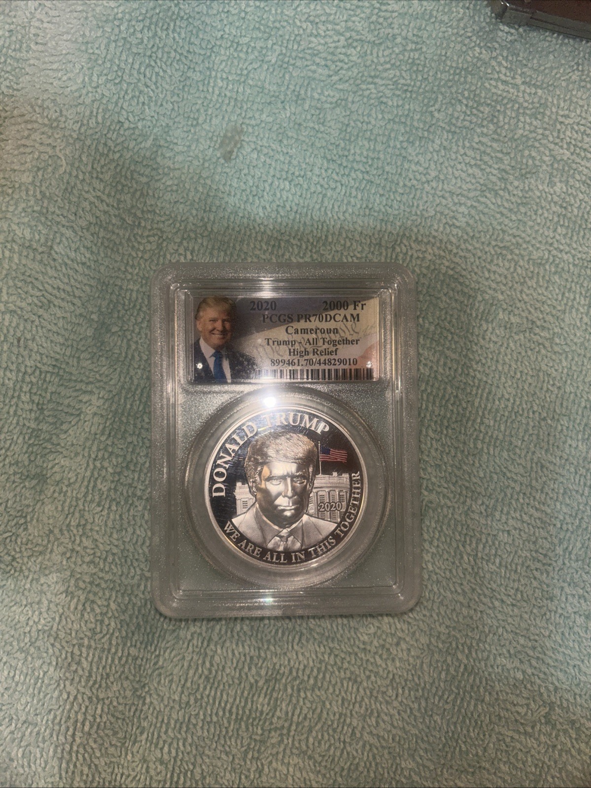 2020 CAMEROON PROOF SILVER DONALD TRUMP NGC PF70 HIGH RELIEF 1 OZ .999 WITH COA