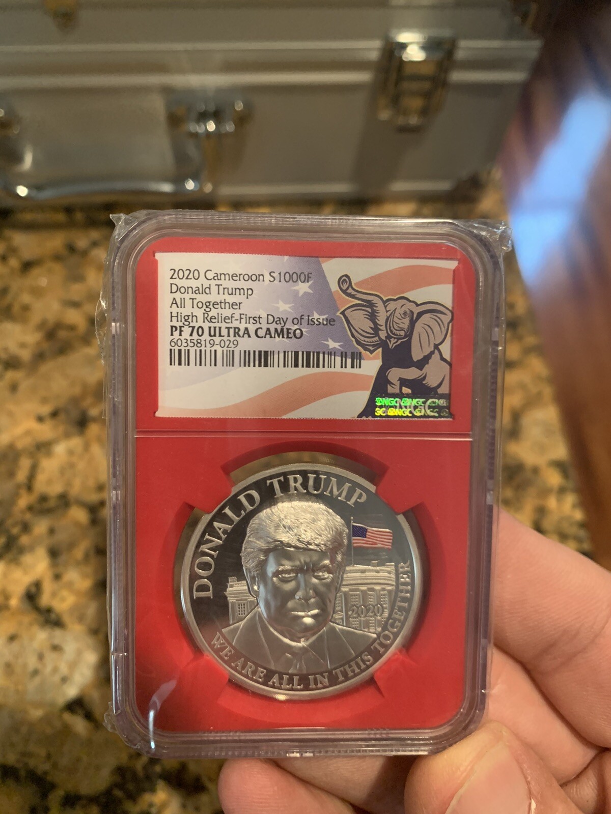 Description: 2020 PF70 Cameroon S1000F Donald Trump.