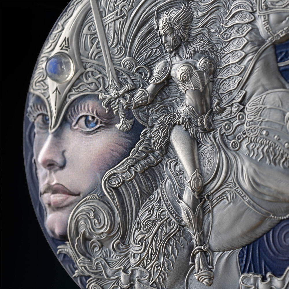 Description: Valkyrie is a first coin from the new Femina Bellator series about stunning warrior maidens. Valkyries are goddesses of Norse. The Valkyrie coin breathes with the cold Norse myths. Make it a remarkable new piece in your collection.