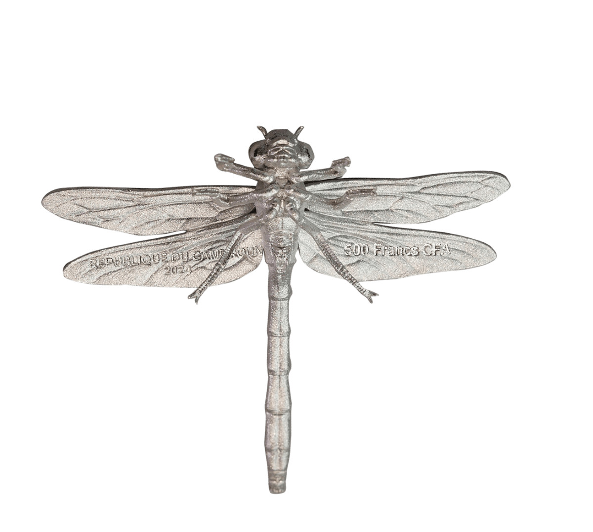 Description: It’s a silver dragonfly. The silver coin adopts a 3D casting process, showing the complete form of a dragonfly. The wings of a dragonfly are engraved with the country, year and face value. Premium Bullion.