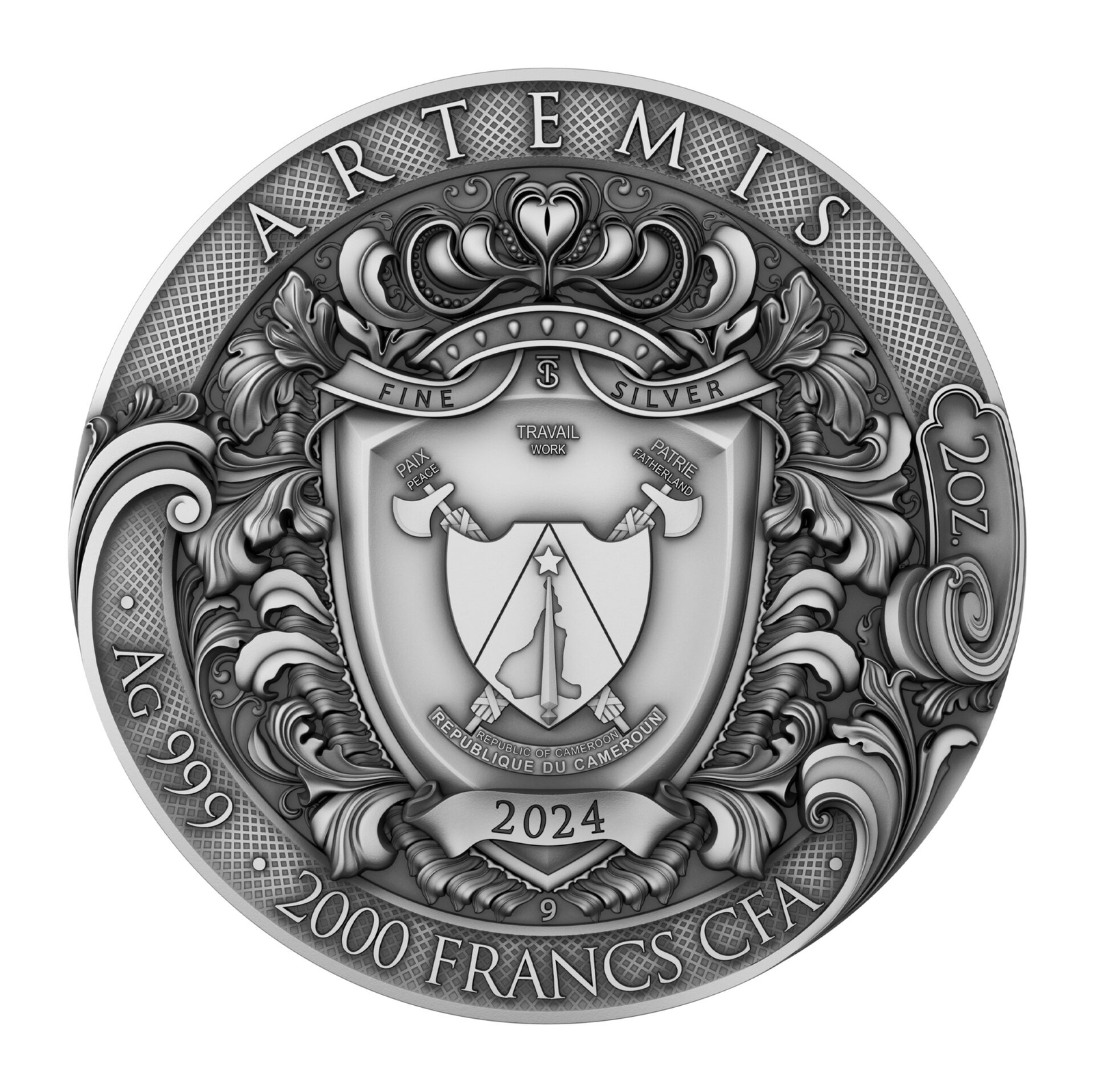 2024 Cameroon Artemis 2 oz Silver Antiqued Gilded High Relief Colorized Coin