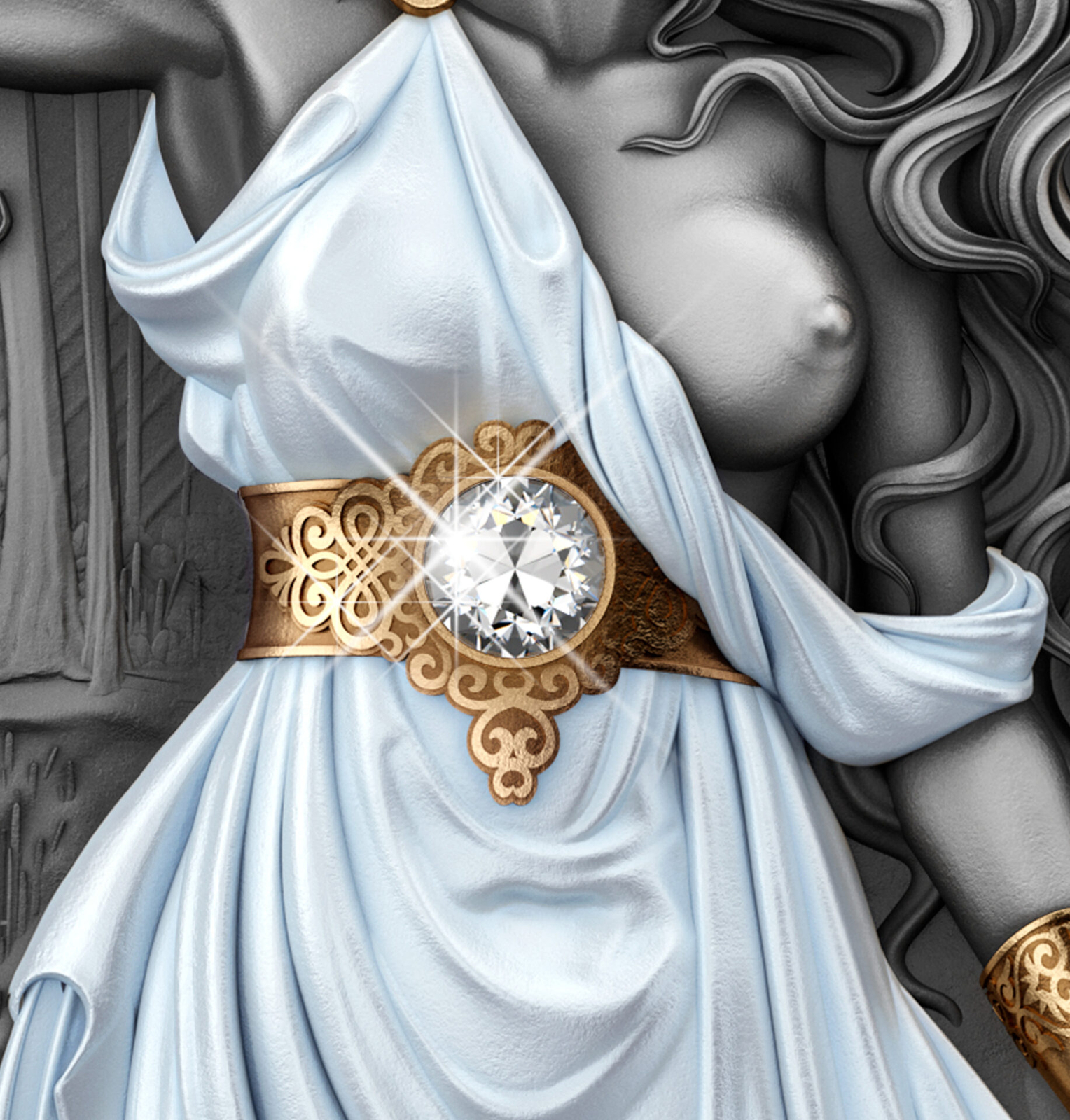 Description: In Greek mythology, Artemis is. Antique Finish, Selective Gold Gilding & Genuine Diamond insert. She walks gently upon the earth with her white dress gently draped over her shoulder, as she prepares to draws her bow.