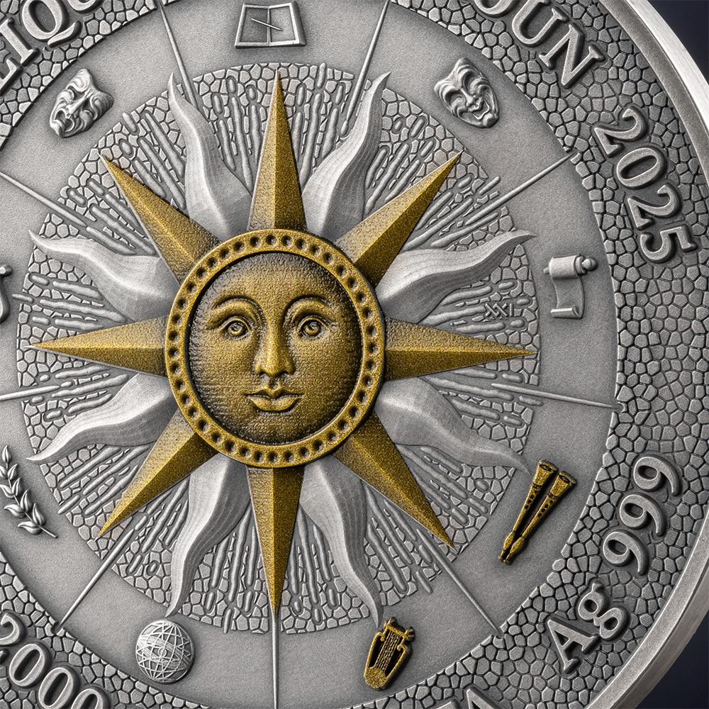 Description: The muse of dance and lyric poetry. She is often depicted with a lyre and a crown of flowers. The muse of music and song. She is often depicted with a flute. The second coin in ‘The Nine Muses’ collection, where each Greek Muse is celebrated for her unique artistic and scholarly domain.