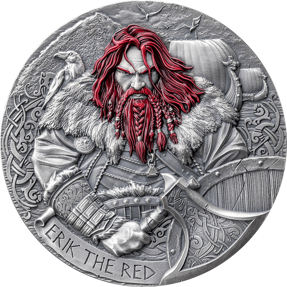 Description: Set sail with ‘Erik the Red’, the second coin in the ‘The Way to Valhalla’ series by MINT XXI. Enhanced with digital printing that breathes fire into his red beard and hair, and sculpted in high relief, it showcases the might of his arms.