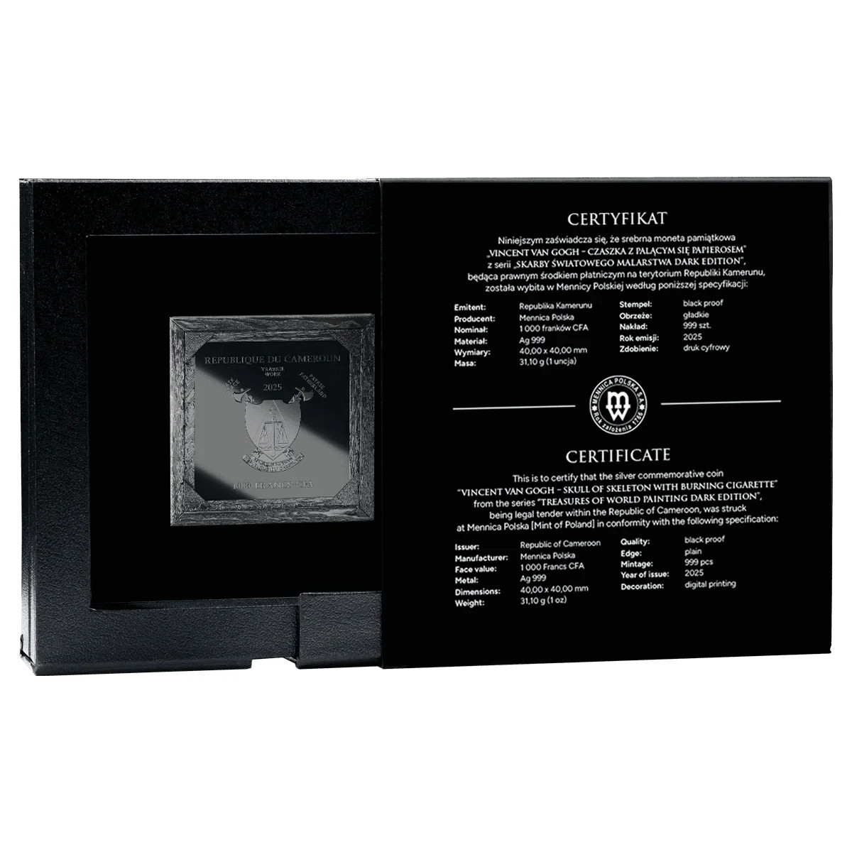 Description: Made with a fineness of 0.999, this square-shaped coin features a striking proof finish and is certified by the mint. Year: 2025. We are Direct to Mint with Agoro, Mint of Poland, Mint of Gdnask, Mint XXI, Art Mint, T&S Coin, All-Collect & several more internationally.