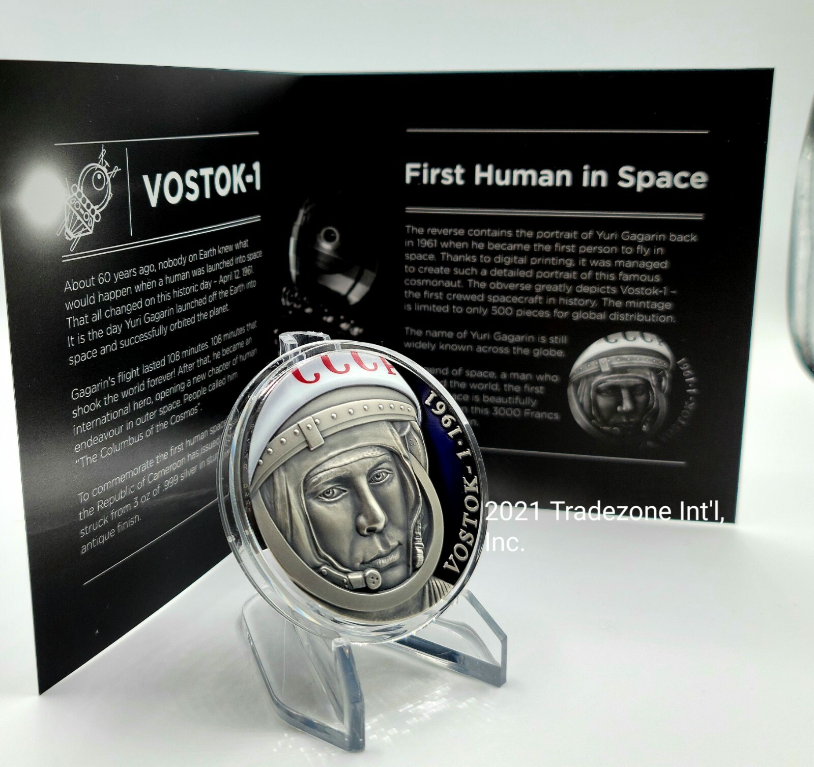 Apollo 11 3 oz Antique finish Silver Coin 3000 Francs CFA Cameroon 2019