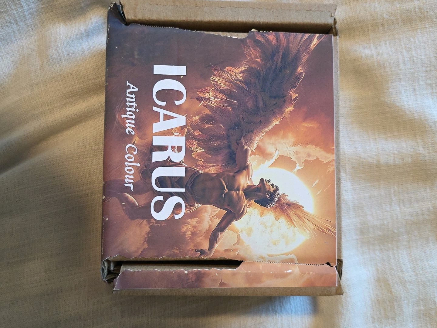 Description: 2025 Cameroon 2000 Francs Icarus Antiqued and Colorized Silver Coin Low Mintage S/N 79 two tro ounce silver