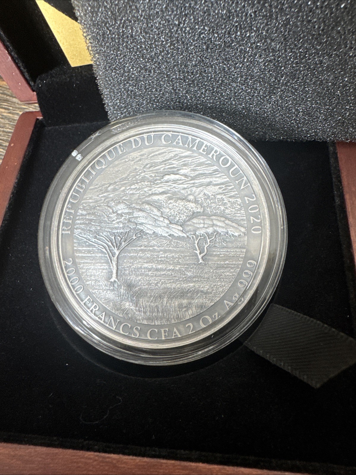 2020 Cameroon 2000 Francs Rapa Nui Easter Island Lava 2 oz Silver Coin Box and COA
