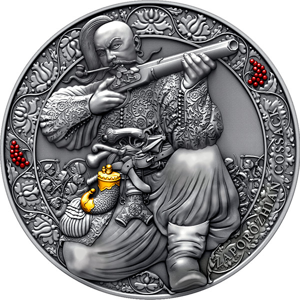 Description: The “Legendary Warriors” series continues with an exclusive silver item – “Zaporozhian Cossack”. It depicts one of the Ukrainian defenders who led rebellions against Poland and landlords. Ukrainian Cossacks were fighters, who lived on the Pontic-Caspian steppe below the Dnieper Rapids, also known as the Wild Fields.