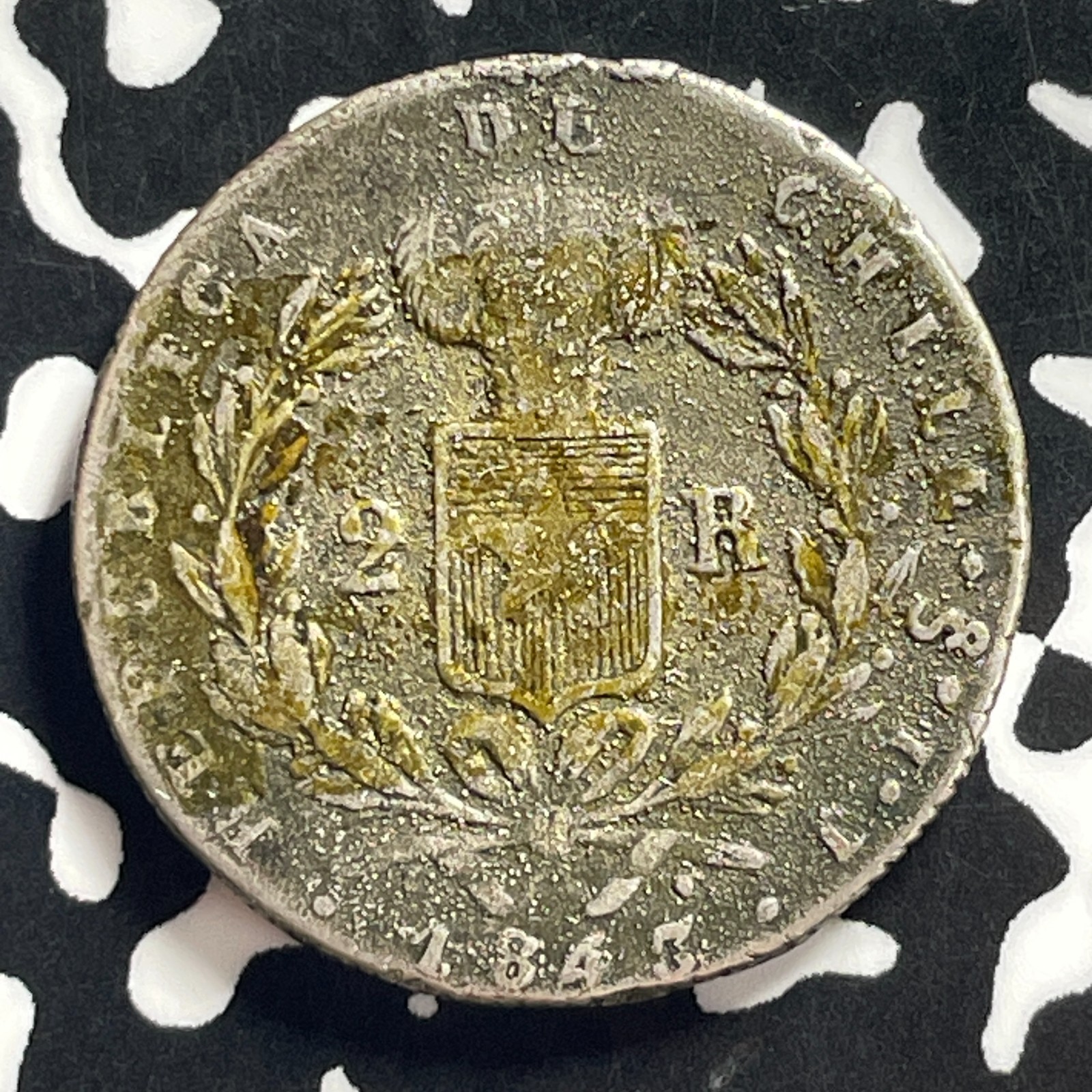 Chile. 1846/6 So IJ Silver 2 Reales 5.79 gr. 22.91 mm. VF KM-100.2