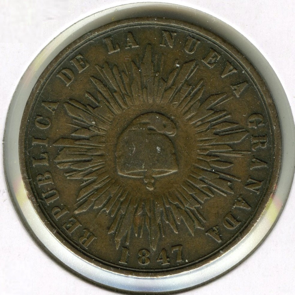 Description: 1847 Colombia Coin 1 Decimo de Real. Republica de la Nueva Granada.