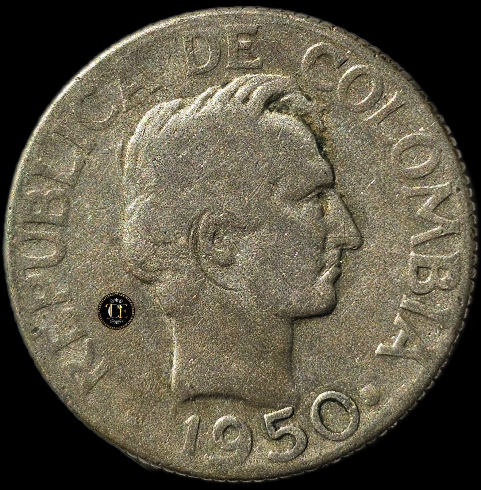 Description: 1950 (B) 10 Centavos Colombia Silver Coin, Mint Bogotá ¡VERY SCARSE! ¡GOOD YEAR! The product is a 1950 10 Centavos Colombia Silver Coin minted in Bogotá. This very scarce coin features the variety with “B” above and is composed of 50% silver. With a beautiful brown color and being circulated, this coin is a valuable piece of Colombian history. It is a must-have for collectors of world coins and those interested in South American numismatics.