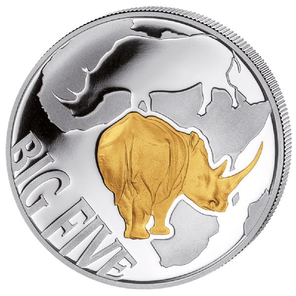 Description: This Item: 2013 Congo Big Five Rhino Gold Gilt 1/2 oz Silver Coin. Silver Content:1/2 Troy Oz of. 999 Silver.