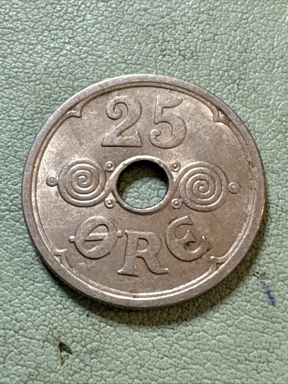 Description: The 1936 Denmark 25 Ore Coin (KM#823) is a beautifully crafted piece of world currency. This coin, made of copper-nickel, bears the face value of 25 Øre and originates from Denmark. It is a collectible item that holds historical significance and is highly sought after by numismatists and collectors alike.